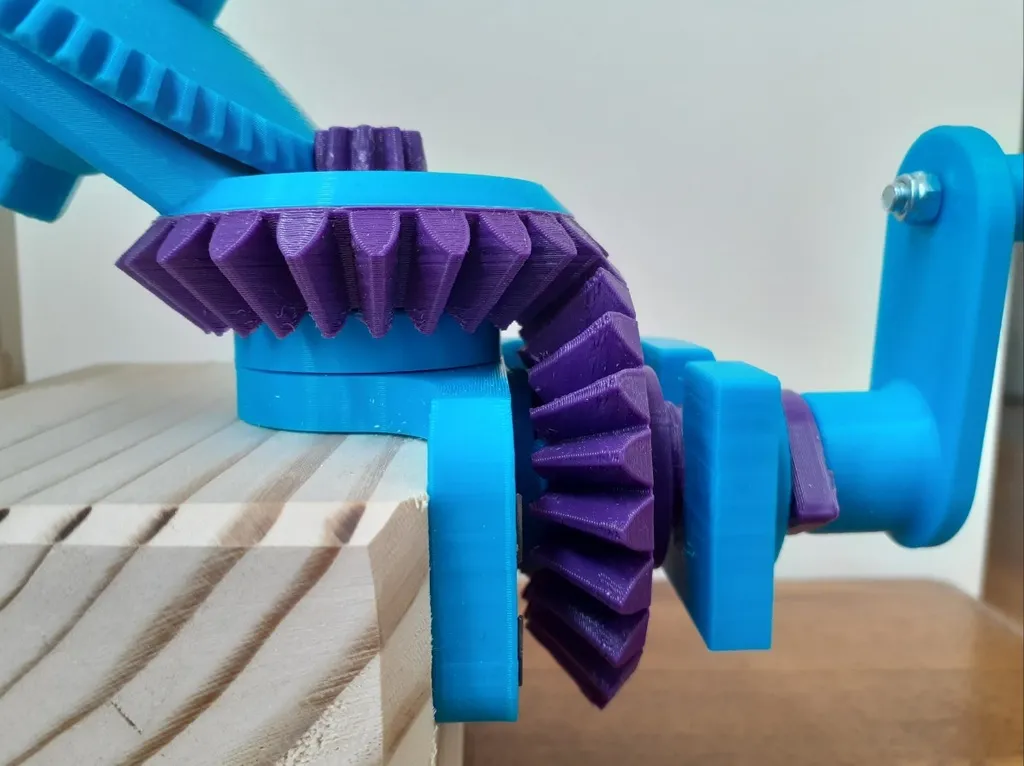 Tôi nhận thấy rằng thiết kế Gear2 ban đầu có trục Gear2 hơi lệch tâm (cái mà vừa với ổ cắm 14mm). Nó có thể sử dụng như hiện tại nhưng độ lệch của trục gây ra một chút rung lắc nên tôi đã làm lại Gear2 để căn chỉnh trục ở giữa và cũng làm cho việc in trở nên dễ dàng hơn bằng cách thêm một vòng hỗ trợ có thể tháo rời mà dễ dàng kéo ra khỏi đầu răng để in theo hướng gear-down tốt hơn với ít hỗ trợ hơn. Nếu bạn quan tâm đến bản cập nhật Gear2 này để sử dụng với thiết kế ban đầu (không phải bản remix này), hãy xem "Gear2_With_Removable_Ring_14mm_v2.stl". Hơn nữa, dựa trên một số phản hồi, tôi đã thêm một phiên bản Gear2 với kết nối tốt hơn đến vòng tháo rời để cải thiện khả năng in trong một số trường hợp. Tệp này có tên là 'Gear2_With_Removable_Ring_13mm_with_Extra_Ring_Support_v2.stl" mà thêm (24) xi lanh nhỏ trên đầu của 24 răng gear chỉ cao khoảng một lớp cho một kết nối cơ học tốt hơn giữa Gear2 và vòng tháo rời.