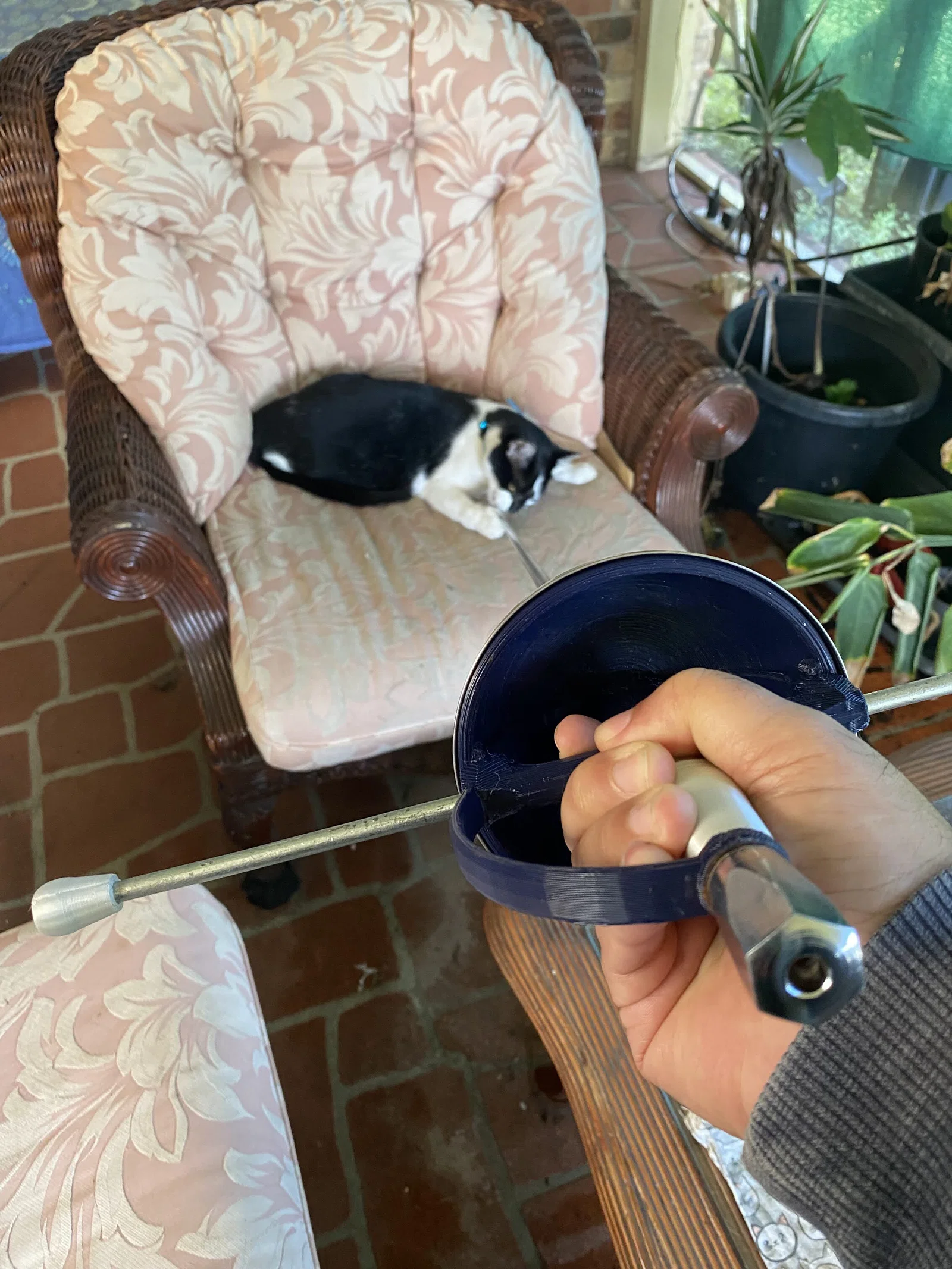 Dự án rapier tập HEMA in 3D (có tuỳ chọn cup), thiết kế để tương thích các lưỡi epee tiêu chuẩn và cả HFA Musketeer. Dùng PLA+ trở lên, 2 thanh thép 6mm làm quillons, infill 60–100% và cần supports.