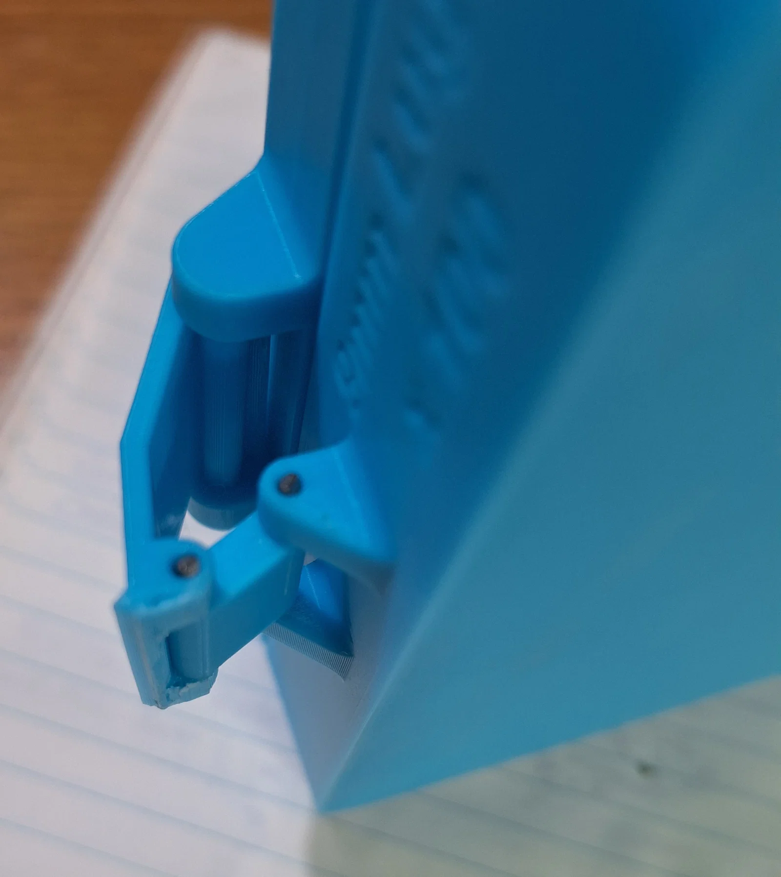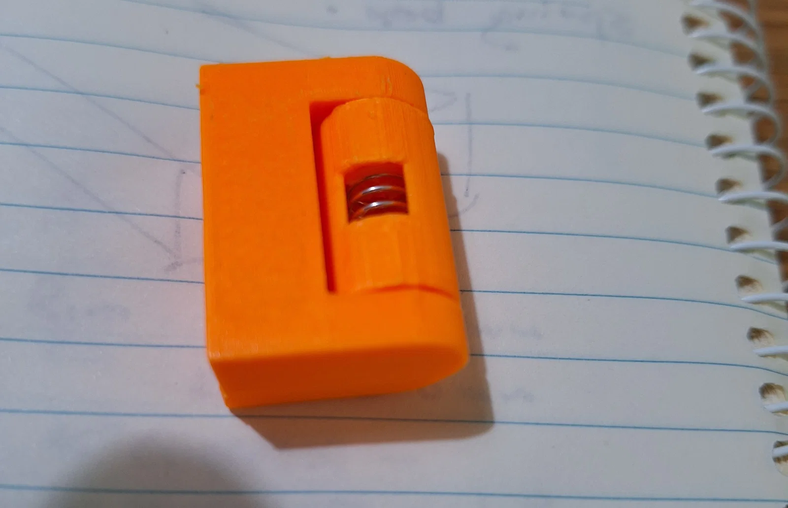 Trong nắp có một gioăng (gasket) để kín hộp, hạn chế không khí bên ngoài lọt vào; gioăng làm bằng TPU 95. Hộp và các chi tiết còn lại là PLA.