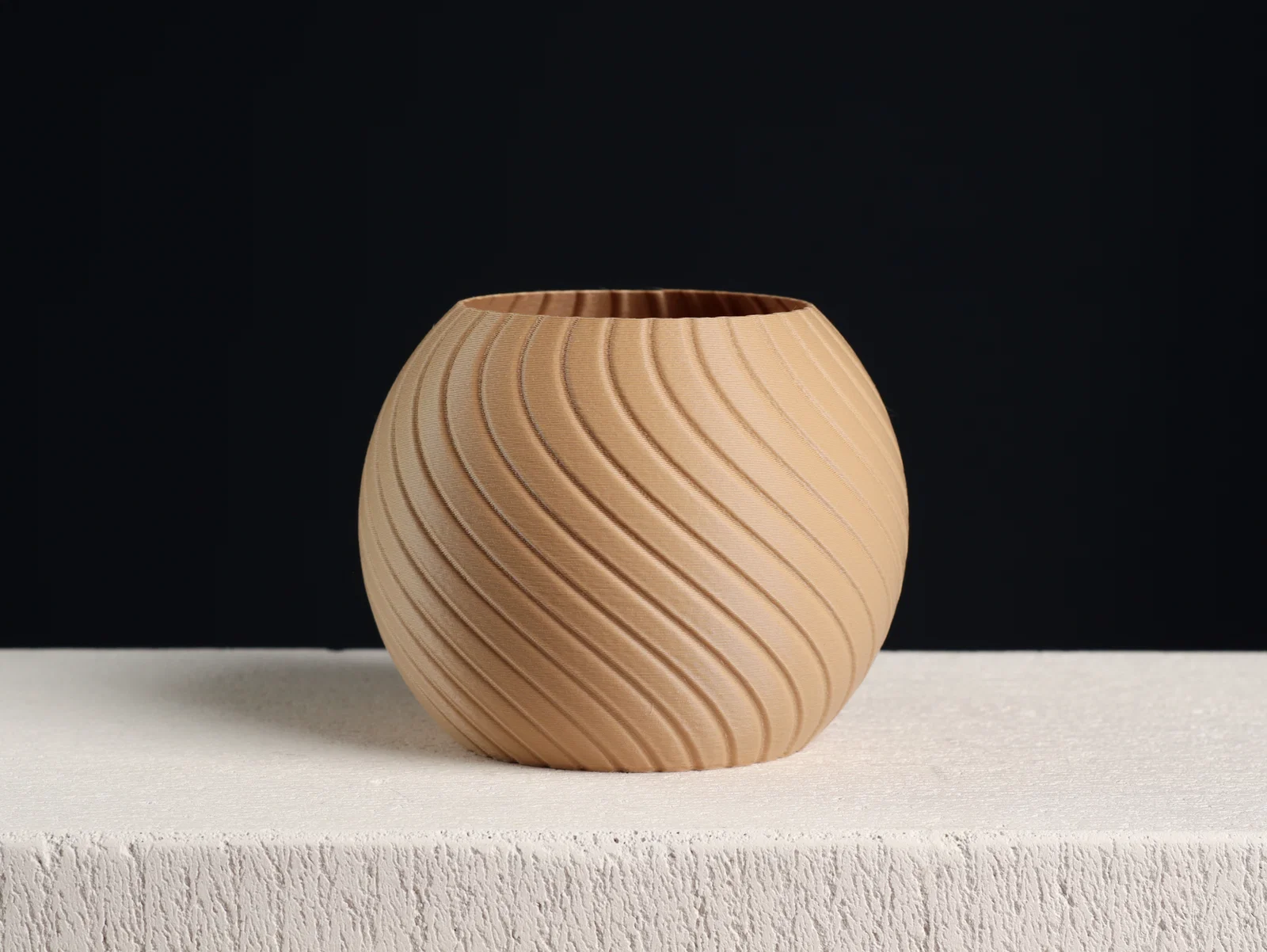Chậu cây hình cầu thiết kế hiện đại với các đường sweep tạo hiệu ứng sáng–tối đẹp mắt. Có bản vase mode và bản “shelled” để in nhiều perimeters. Kích thước 12.4 x 10 cm, in khoảng 2–4 giờ.