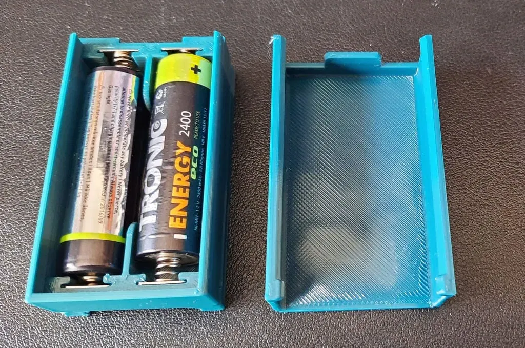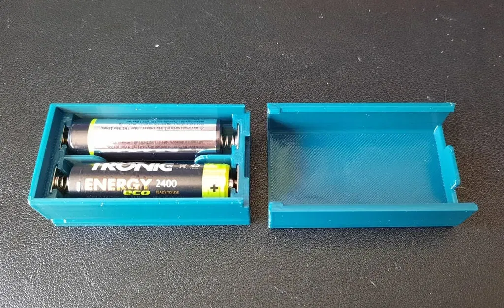 Một bộ pin hai AA đơn giản, với nắp tùy chọn trượt và hai lỗ lắp đặt. Nó sử dụng những người nhỏ bé đó