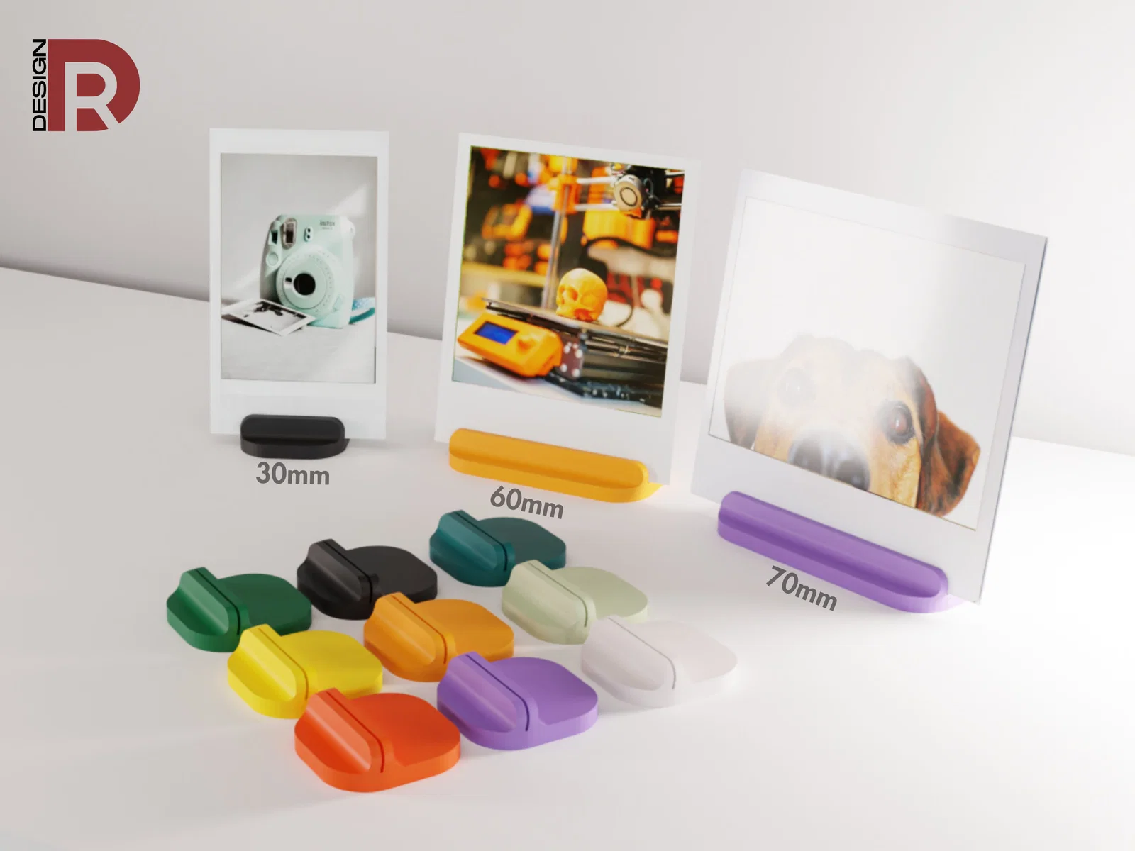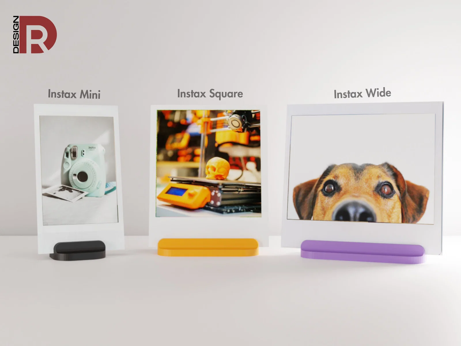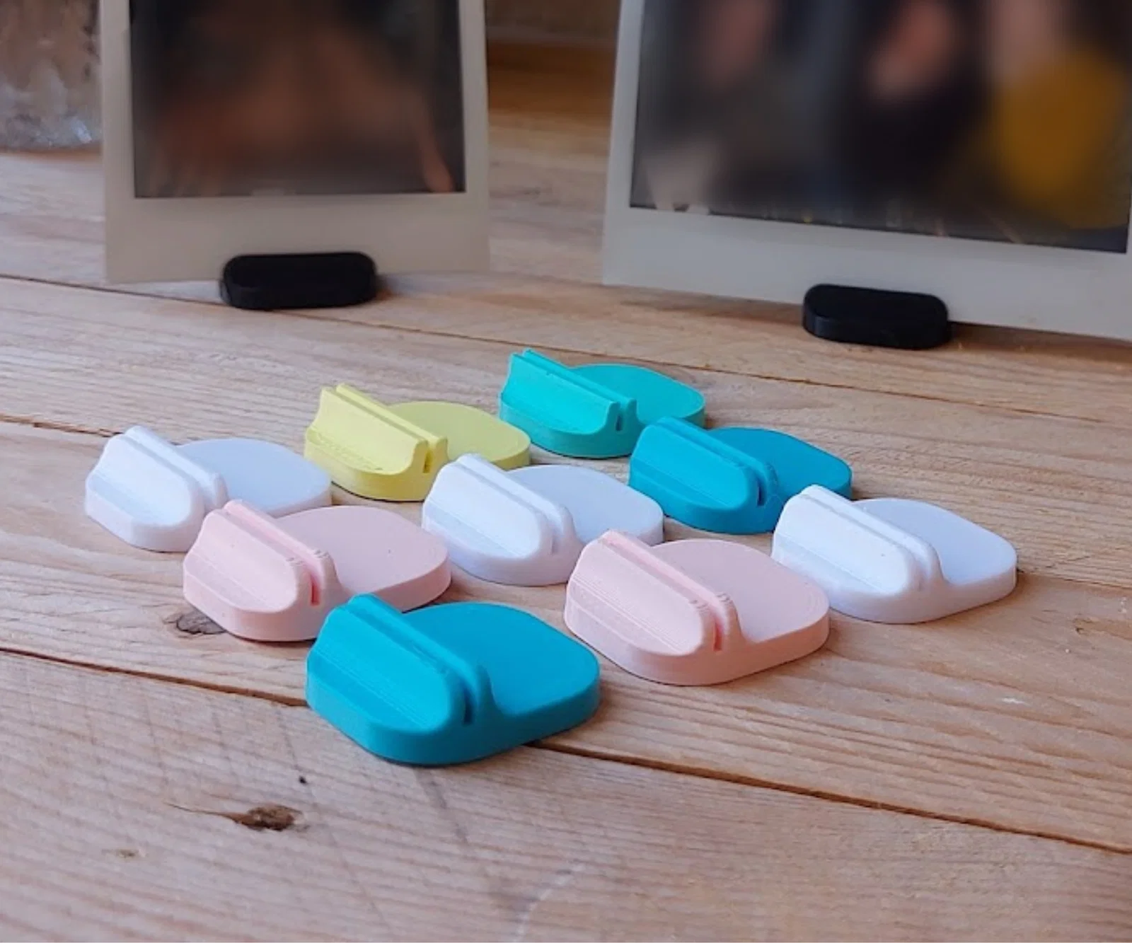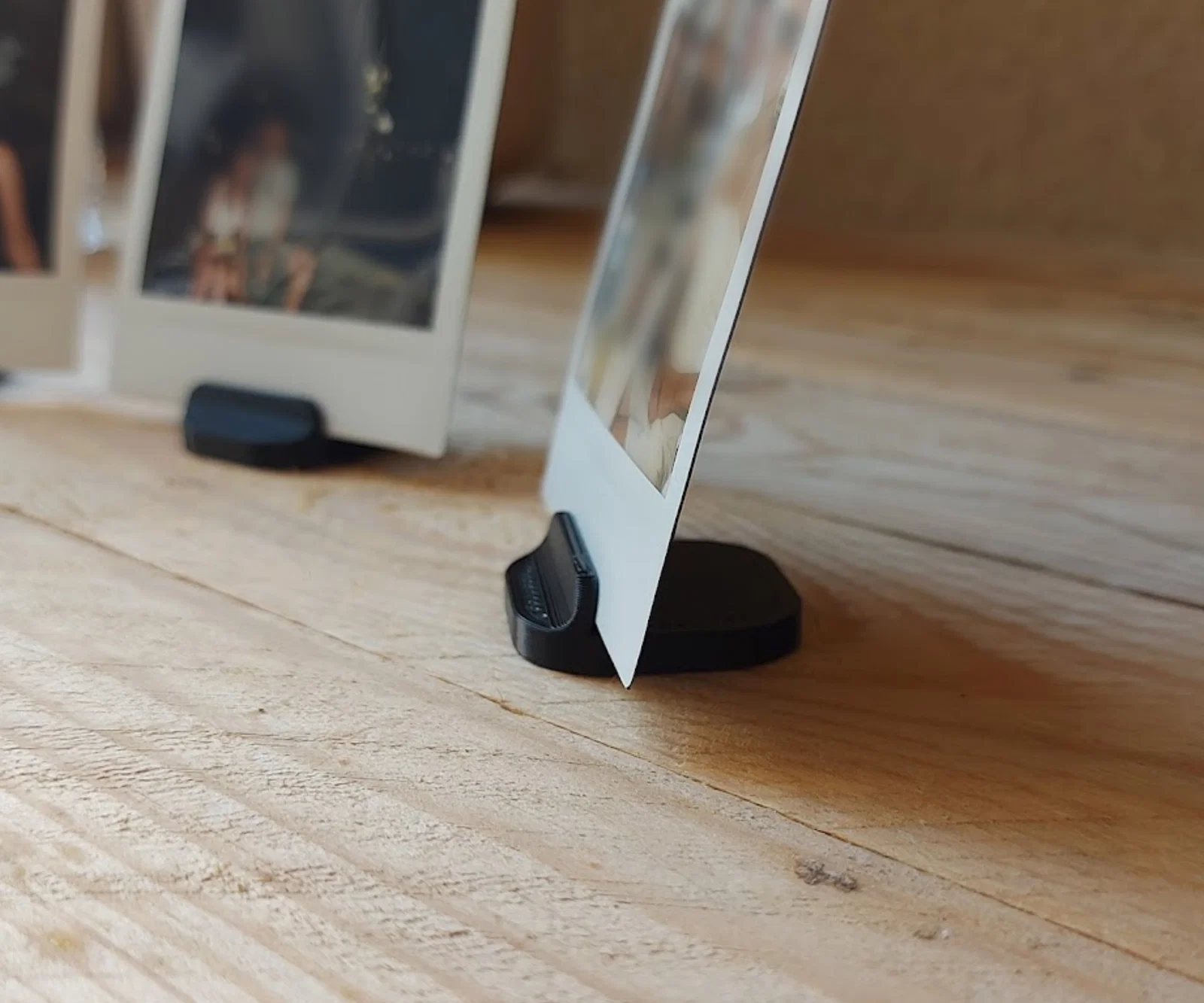 Mẫu stand nhỏ gọn, in nhanh để trưng ảnh Instax/Polaroid Fujifilm. Ảnh được giữ hơi nghiêng để dễ nhìn; có bản 90° và nhiều lựa chọn bề rộng/khe ảnh (1.0–0.4mm). In PLA đẹp, không cần supports.