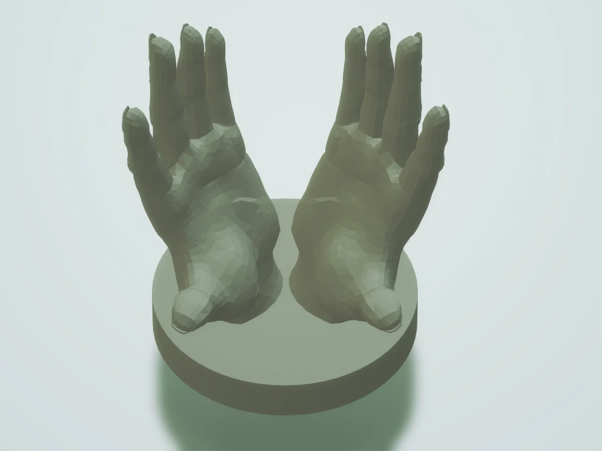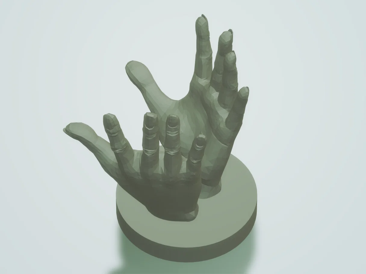 Mẫu giá đỡ trang sức dạng đôi bàn tay, mỗi tay hơi nghiêng ra ngoài để treo nhẫn, dây chuyền, bông tai, đồng hồ… In dễ, không cần supports khi in.