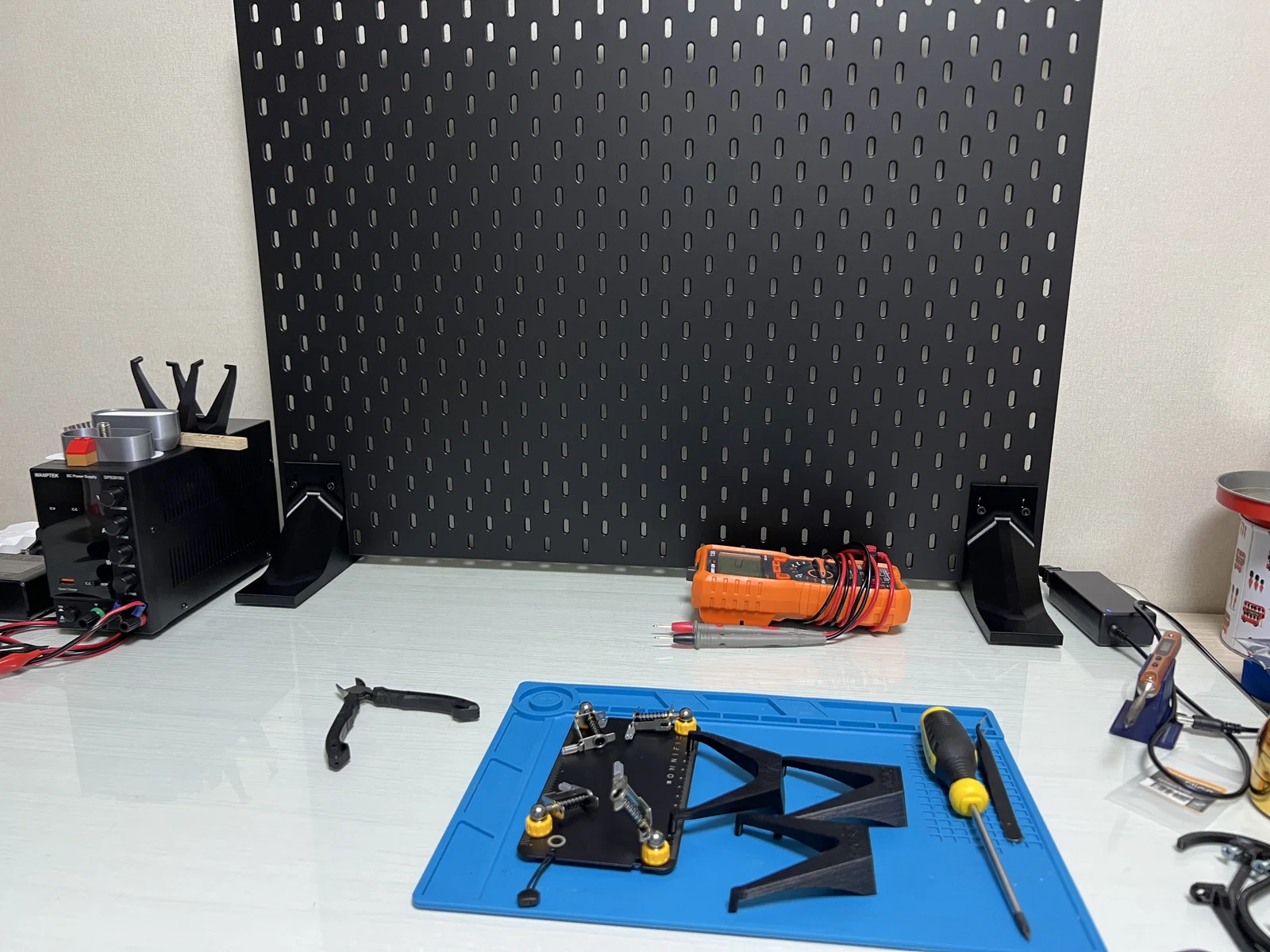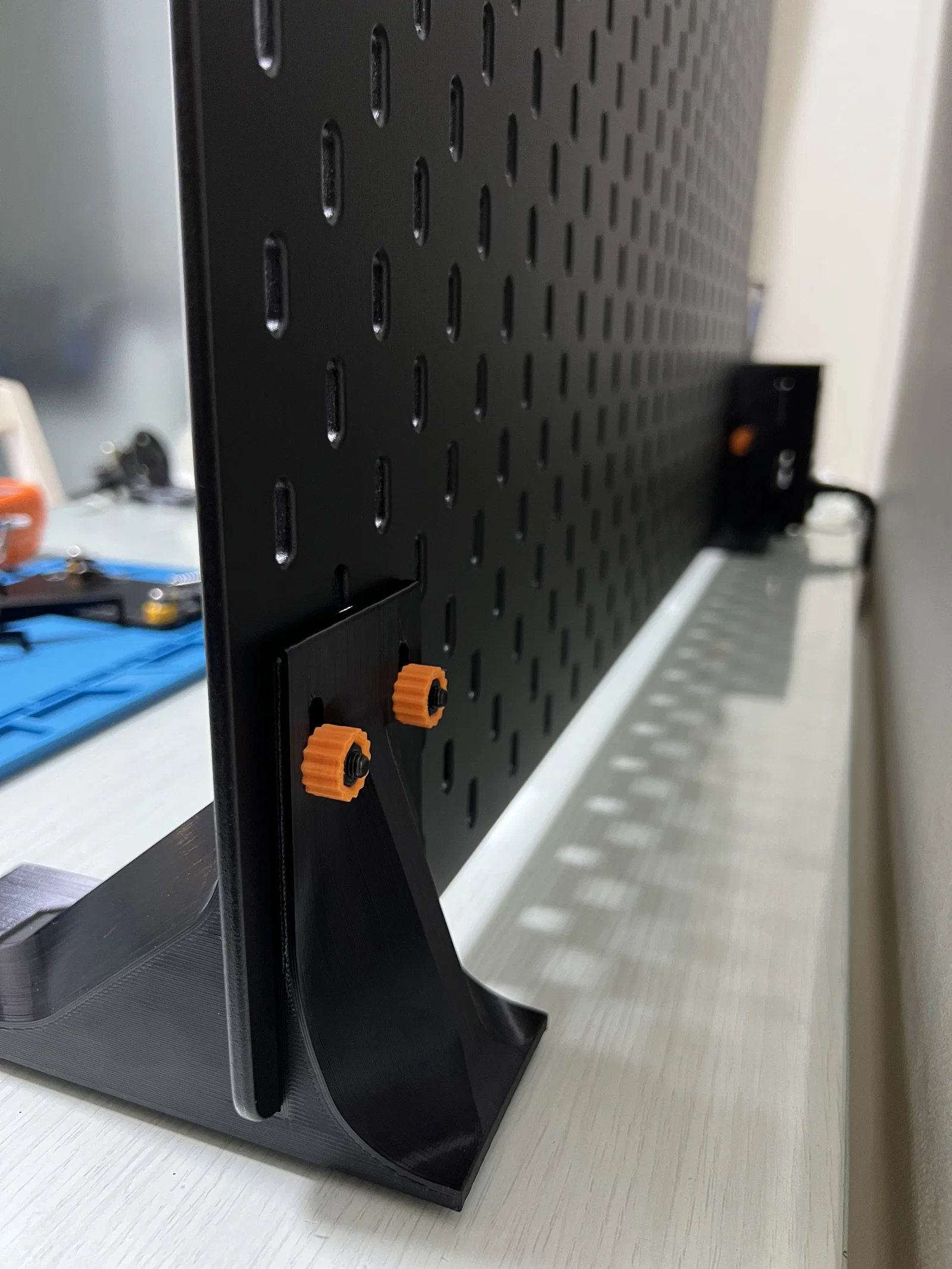 Nếu bạn ở nhà thuê và không muốn khoan tường để gắn Ikea Skadis, bộ Skadis Feet này giúp bảng đứng vững trên bàn làm việc. Khuyến nghị in với nozzle lớn, nhiều perimeters, infill thấp và dùng bulong/đai ốc M5.