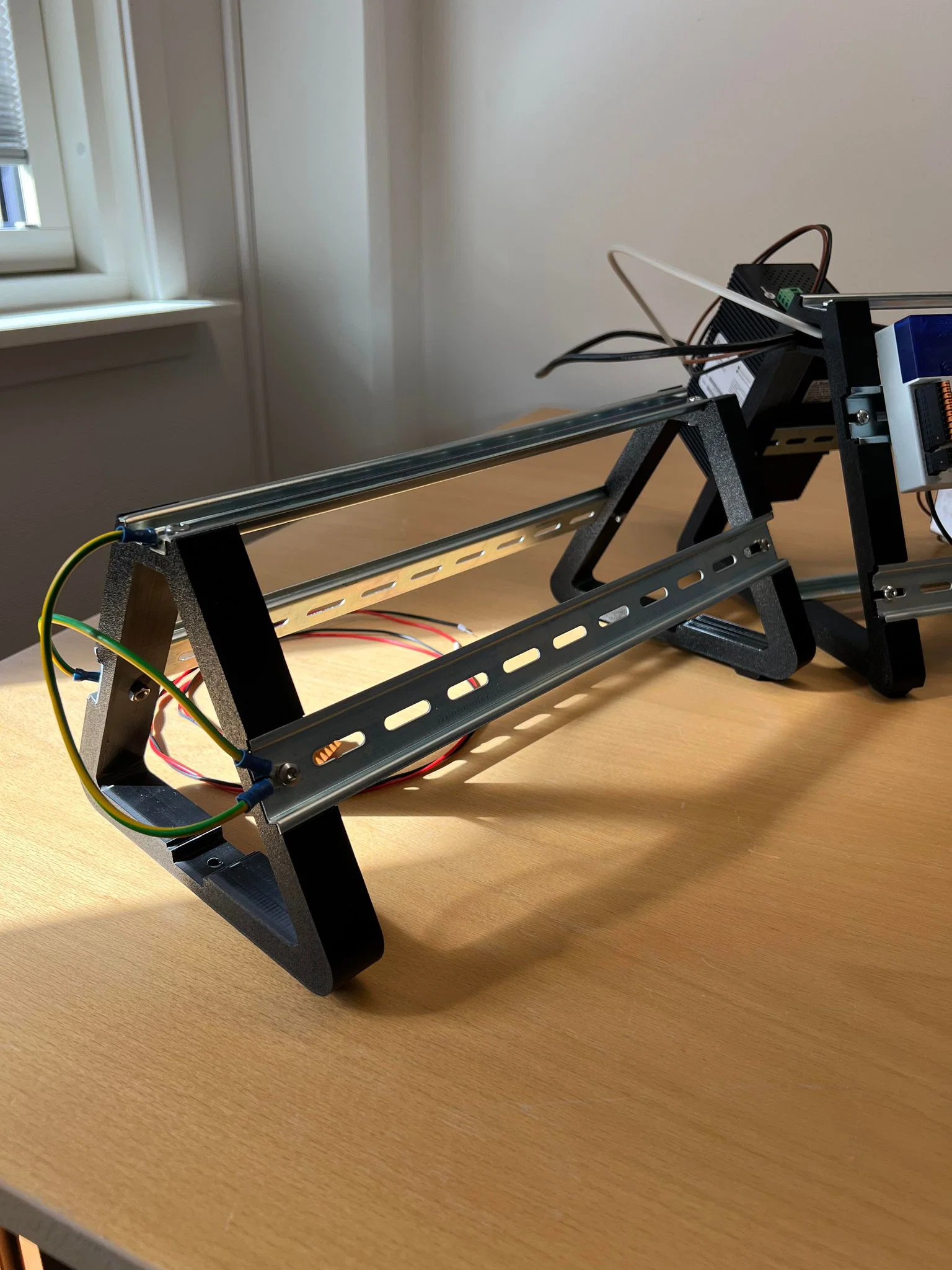 Mình cần một cái giá đỡ trên bàn làm việc nên tự thiết kế cái này. Có 4 kích thước cho dạng desk stand dùng DIN rail. In rất dễ, chỉ cần in 2 phần giống nhau, rồi dùng DIN rail tiêu chuẩn với chiều dài bạn cần để ráp lại toàn bộ. Chi tiết rất cứng cáp, chịu được linh kiện nặng.