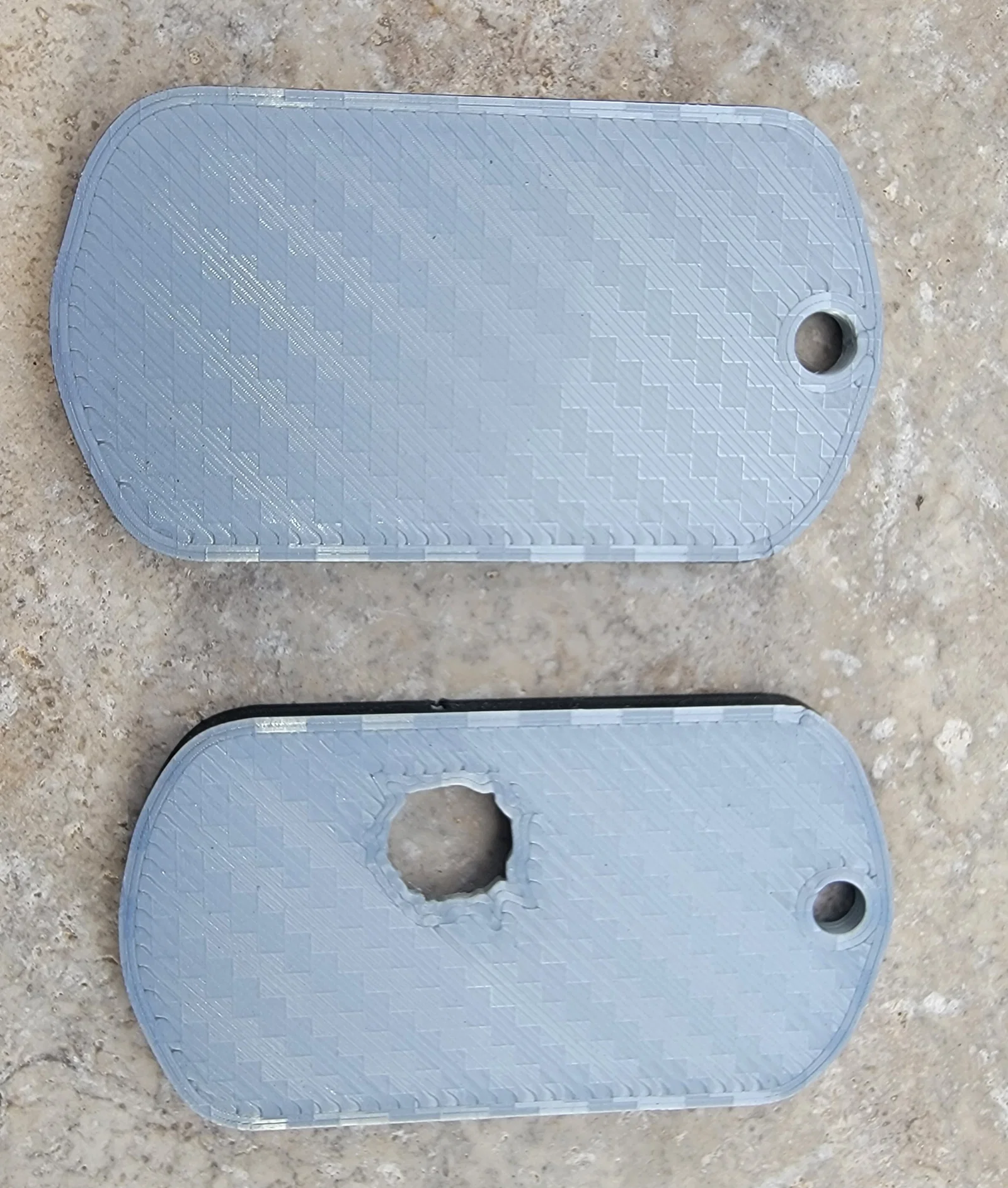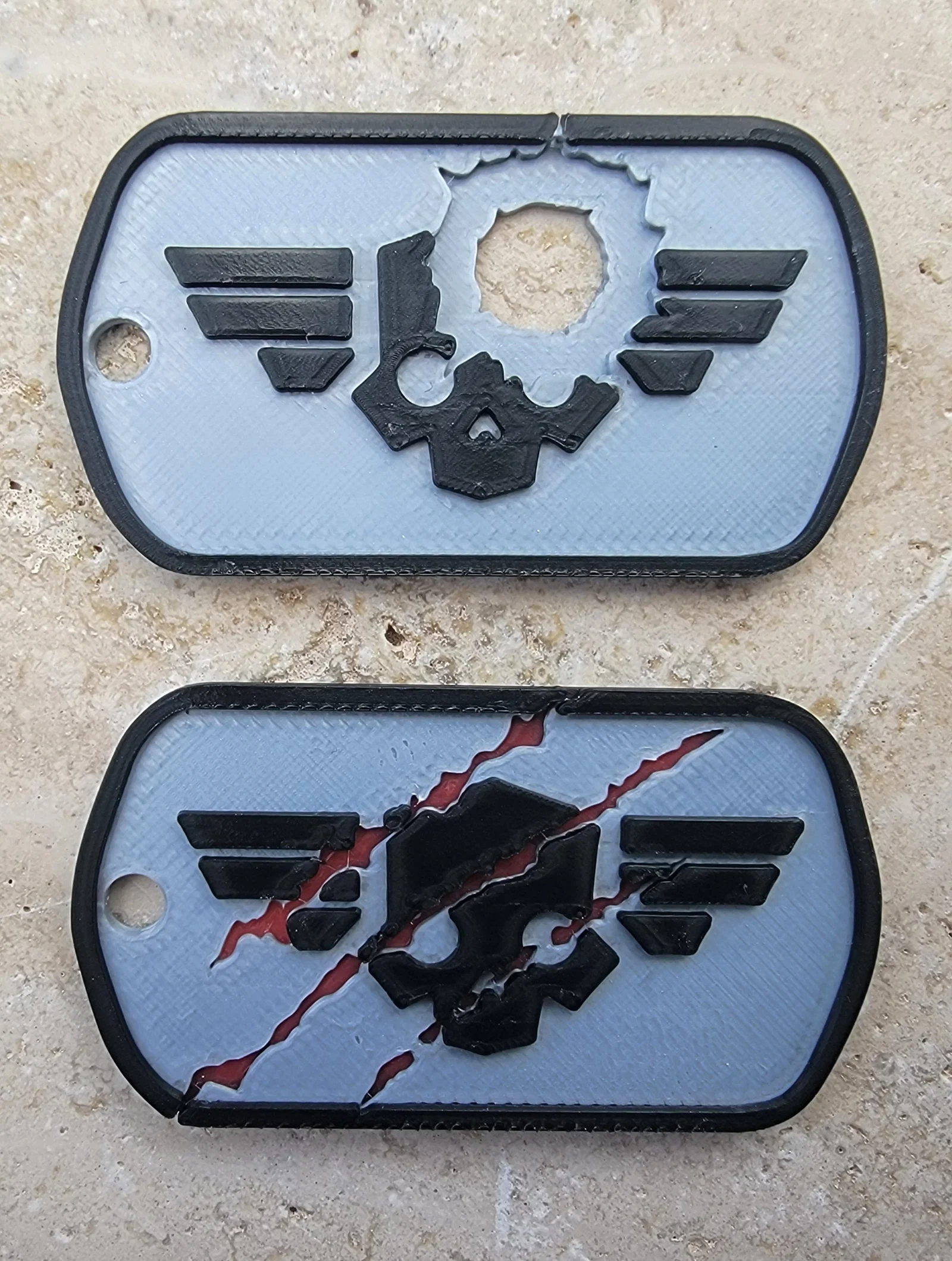 Đây là phiên bản dogtags Helldiver của mình, với form tổng thể và kích thước tham khảo theo tiêu chuẩn hiện hành của quân đội Mỹ (US military specs). Trong file 3MF có màu, phần viền đen được làm để mô phỏng lớp cao su “silencers” thường dùng. Dĩ nhiên mình có “nới tay” một chút ở phần battle damage, do kích thước/tỉ lệ của thẻ.