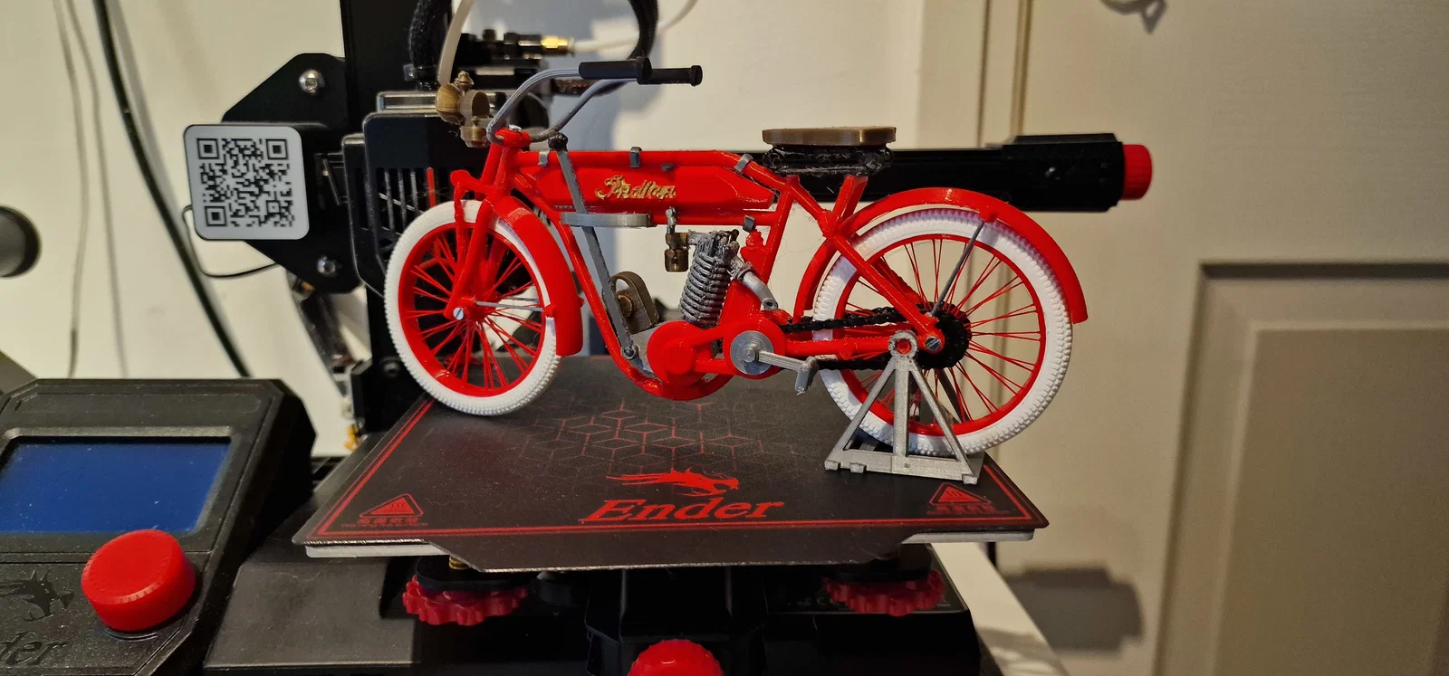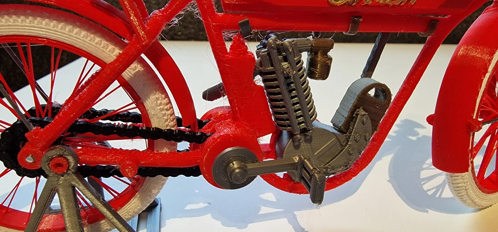 Mô hình Indian motorcycle single cilinder 1910 (designer Ed van der Heijden). Thông số in khuyến nghị: Supports có, resolution Dynamic, infill 50% line, PLA. Lưu ý: phần rems không dùng Supports, speed 60mm/s.
