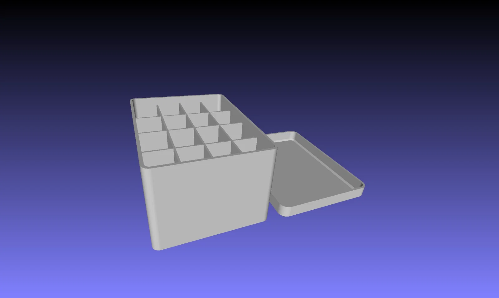 Các điểm chính: hộp được chamfer ở phần đáy và ở phần mép trên của nắp, nhưng các góc (cạnh đứng) thì được bo tròn. Ngoài việc cho phép bạn tự thêm nội thất bên trong, bạn cũng có thể tạo dividers (vách ngăn) một cách đơn giản.
