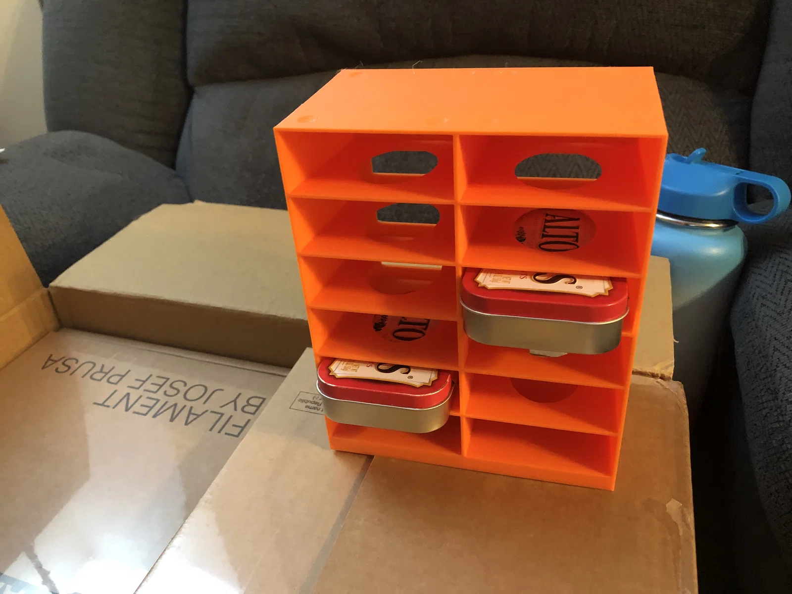 Bản remix kệ lưu trữ giúp bạn tận dụng hộp thiếc Altoids thay vì bỏ đi. Bộ chi tiết in 3D này sắp xếp gọn gàng được tới 12 hộp Altoids tin, tiện để cất đồ linh tinh và dễ lấy.