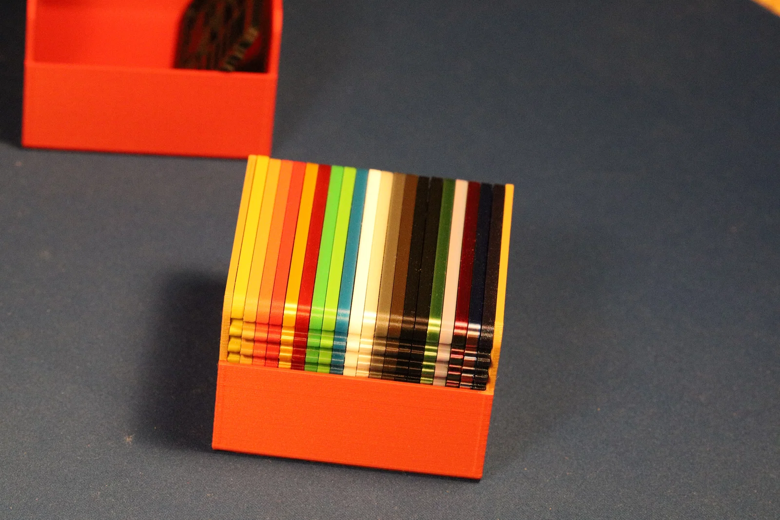 Khay đơn giản để lưu trữ và sắp xếp các mẫu Mini All-in-one Printer Test dùng làm swatch màu filament. Thiết kế tối giản, ít tốn filament, đường line đồng bộ với test print và chứa được tối đa 20 mẫu.