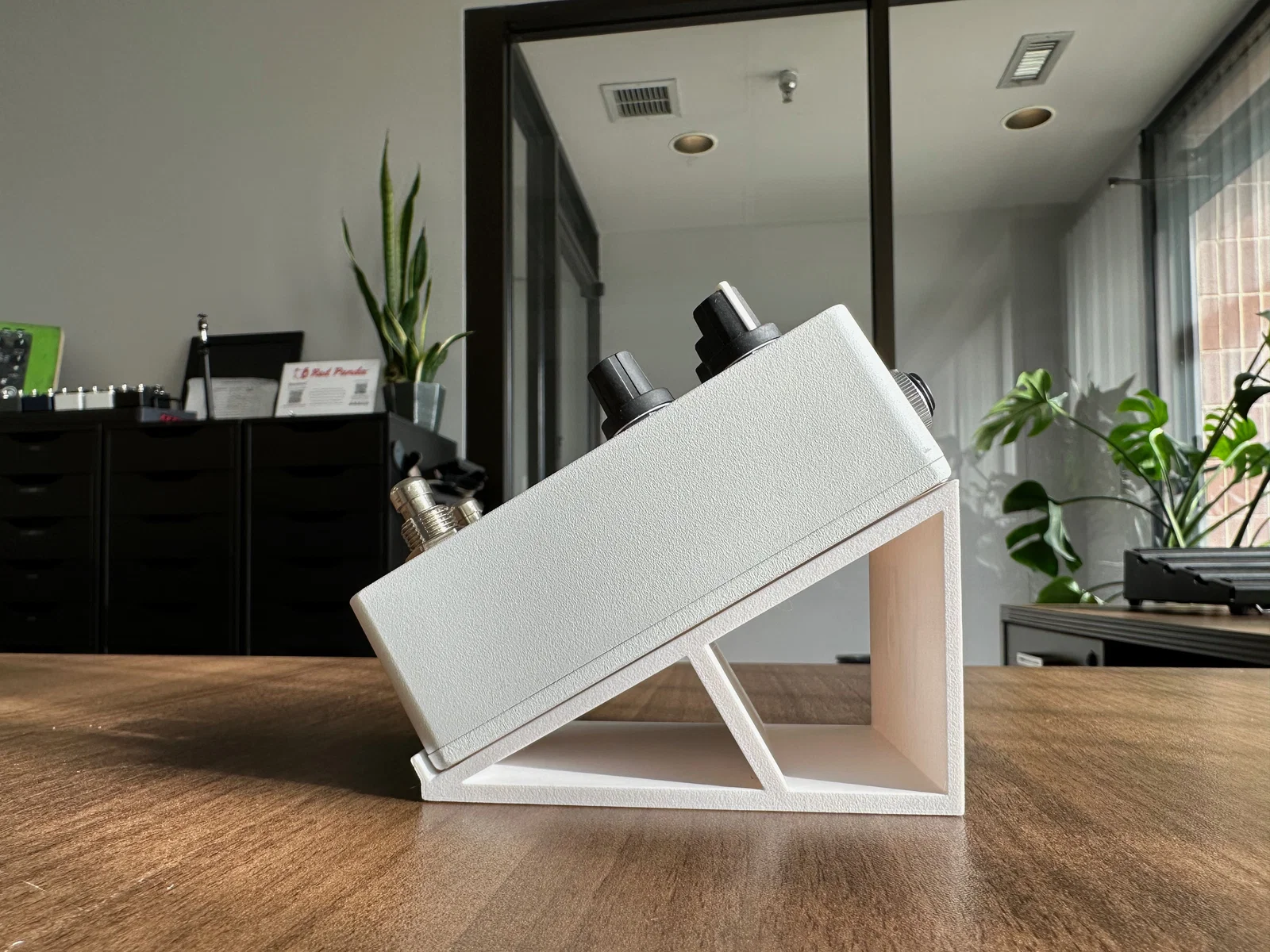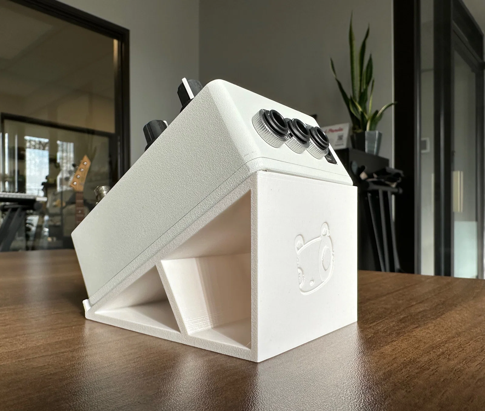 Kệ để bàn cho pedal guitar Red Panda, đặt nghiêng 30°. Phù hợp pedal cỡ 3 in x 4.6 in và nhiều pedal khác. In theo mặt hông không cần supports, thêm chân cao su bên dưới để chống trượt.