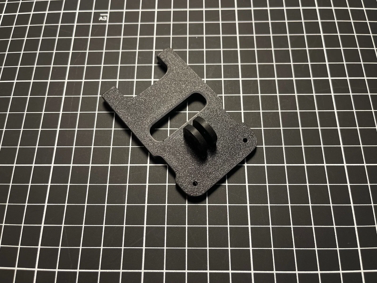Ngàm mỏng cho DJI RC2 (DJI Mini 4 Pro), tương thích hệ GoPro Mount. Thiết kế 3 phần chịu rung tốt, không cần support/brim. Khuyến nghị infill: base 40%, ngàm 95–100%. Cần 2 vít M2x8; có cover che stick khi vận chuyển.