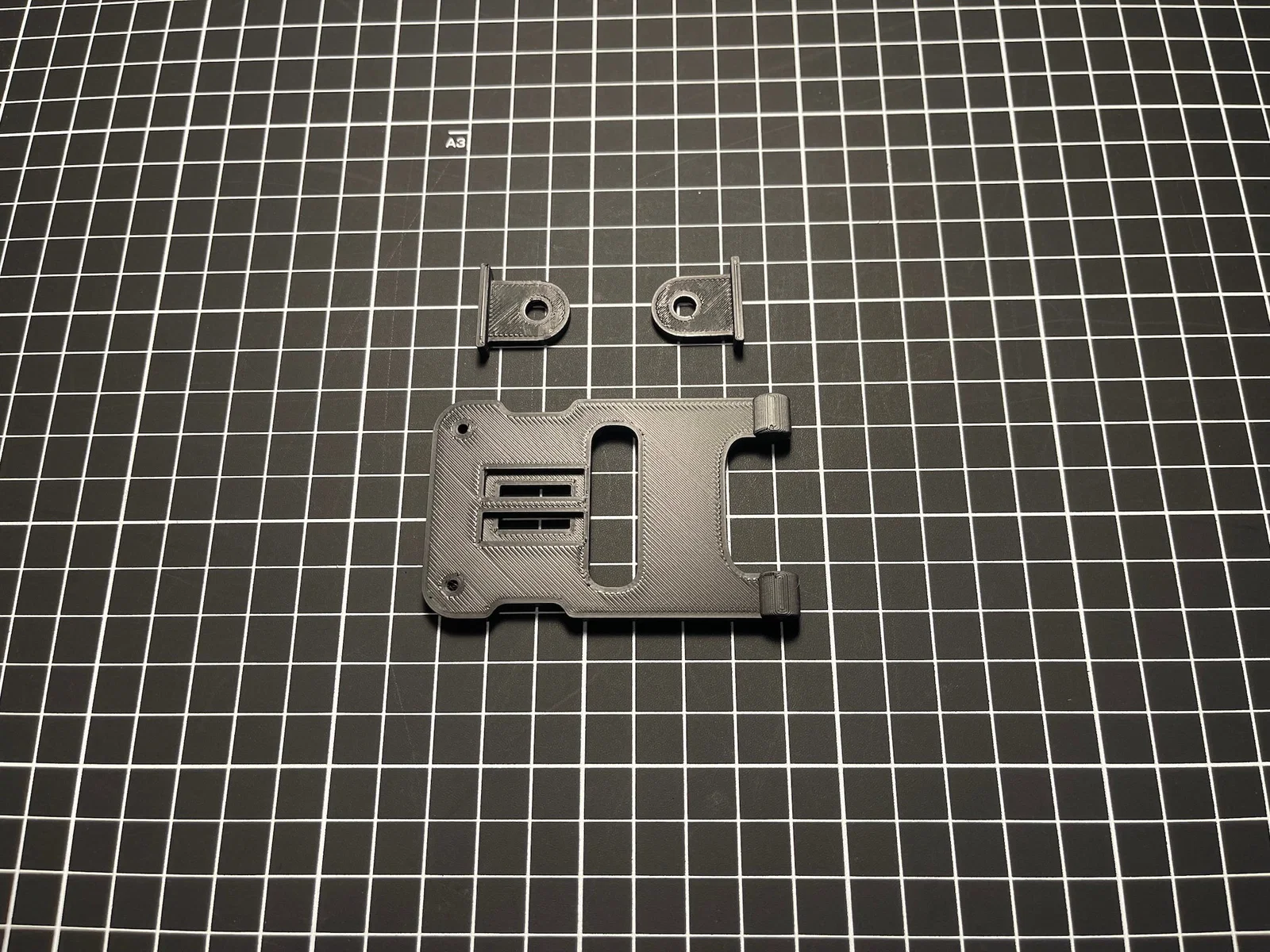 Mình thiết kế ban đầu để gắn lên xe máy, nên nó được tách thành 3 phần để đạt độ cứng chắc cao nhất cho ngàm và đảm bảo không bị gãy khi rung lắc.
