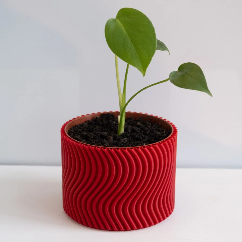 Mẫu chậu cây in vase mode thuộc bộ sưu tập WAVY, dáng uốn lượn thanh lịch để trưng bày cây. Gợi ý dùng saucer tự chế từ ly sữa chua cắt ra. Tham khảo size: chậu 15 cm → cao 15 cm, rộng/sâu 16,5 cm.