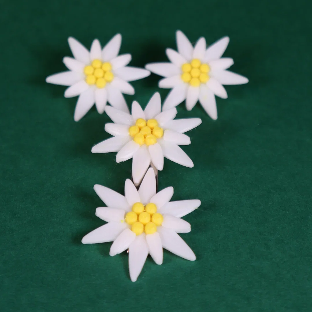 Mẫu hoa Edelweiss kiểu truyền thống Áo, phù hợp cho sự kiện truyền thống. Có thể dùng làm bông tai, kẹp tóc, vòng cổ hay phụ kiện khác. In nhanh, không cần support, hỗ trợ dual/multicolor.