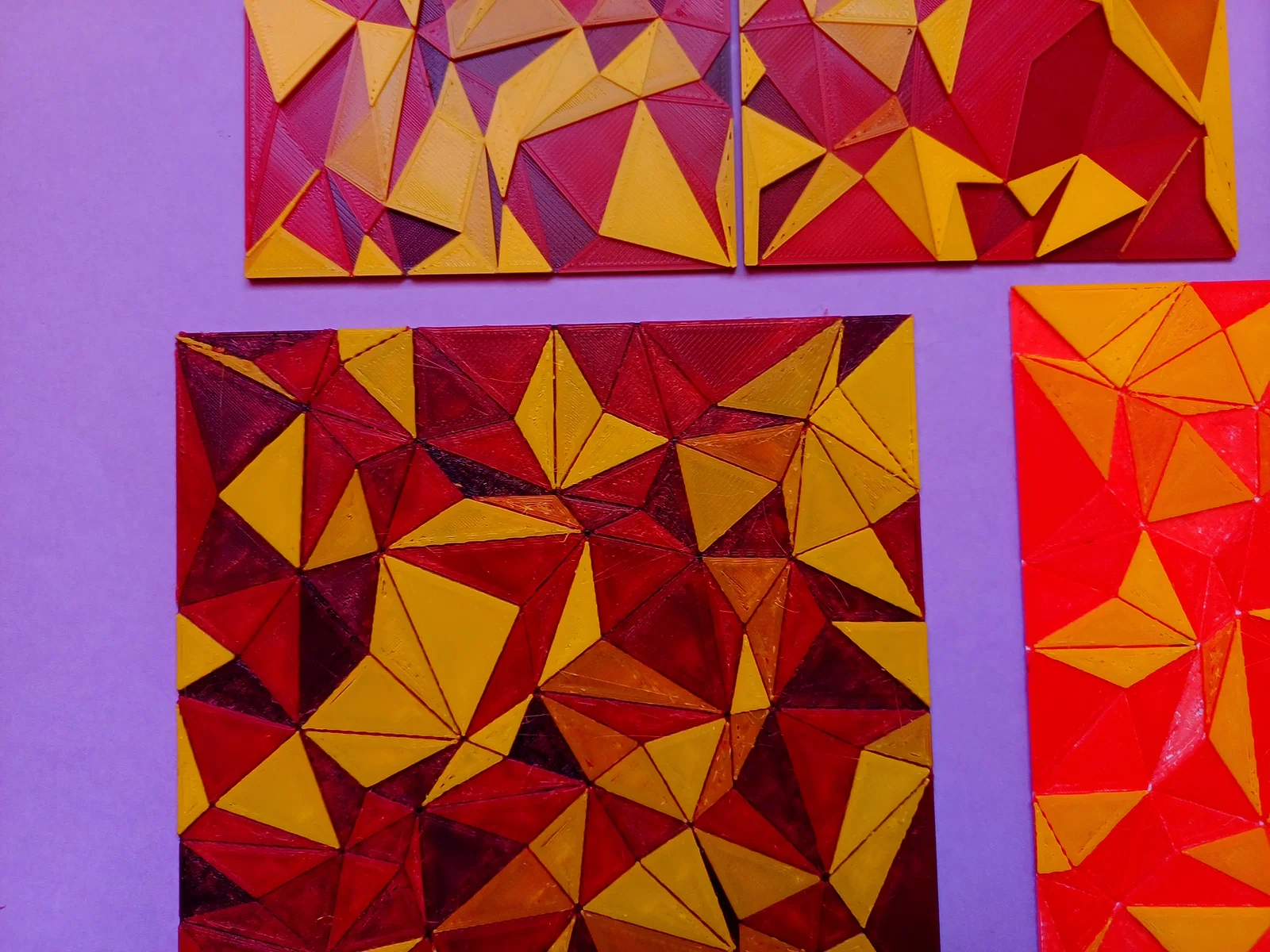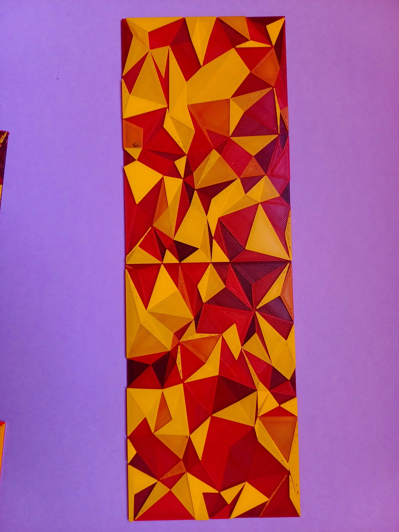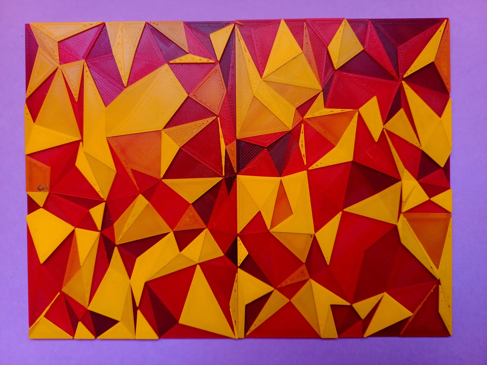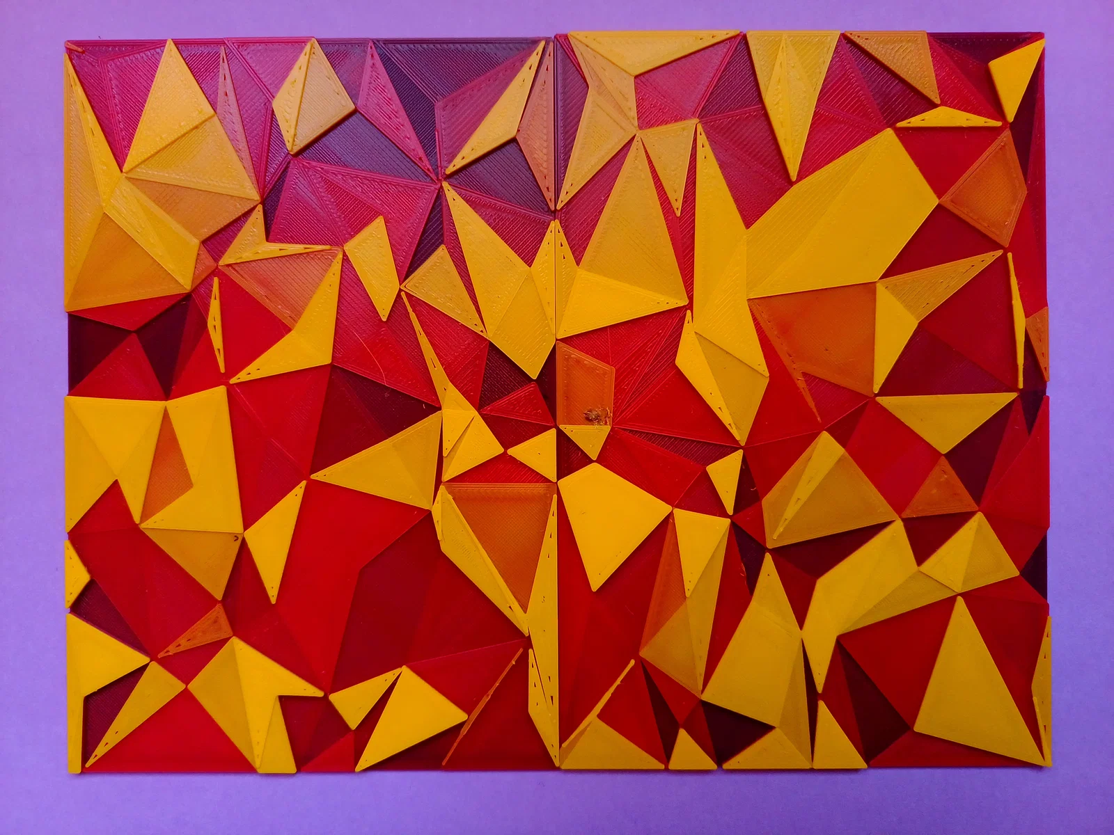 Texture dạng lưới tam giác tileable dựa trên kisquadrille, mỗi tam giác có chiều cao random riêng. Tùy biến cực mạnh trong OpenSCAD (seed, displacement, steps, base), rất hợp cho HueForge và in đổi màu theo độ cao.