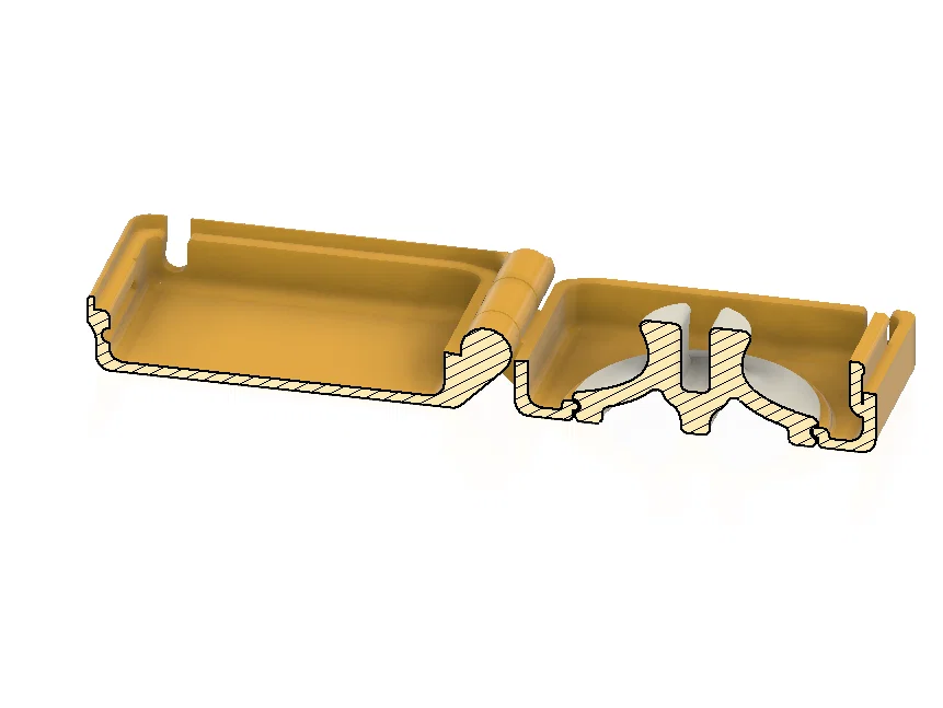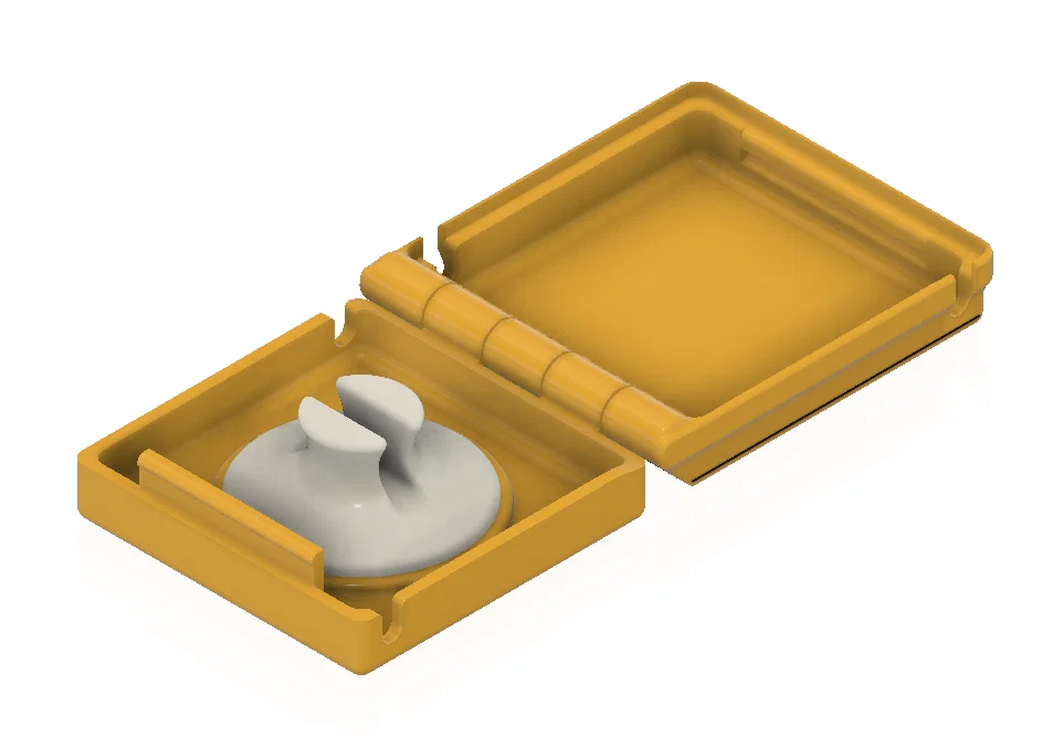 Nền tảng của sản phẩm này là một chiếc hộp có bản lề; giống như núm xoay, nó được in liền khối và không cần lắp ráp. Thiết kế này tận dụng tối đa đặc tính của máy in 3D và không cần in support.