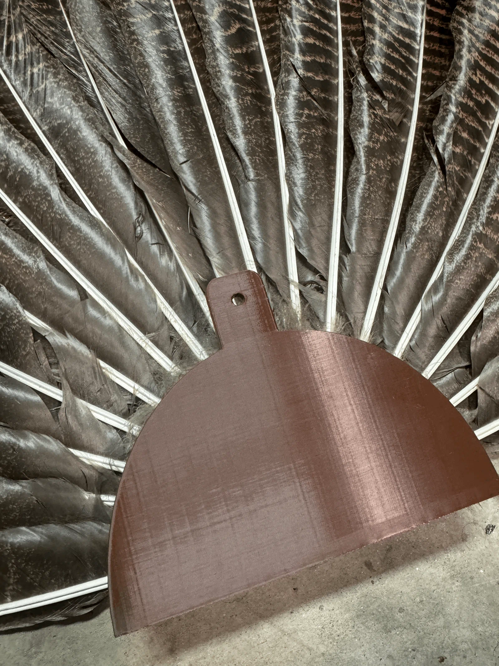 Sau khi kiếm một cái mount 3D để in cho mấy bộ turkey fan/đuôi lông gà tây của mình mà tìm hoài không ra cái nào ổn, nên mình quyết định tự thiết kế luôn. Đây là mẫu mình làm ra. Cái mount này treo tường bằng đúng 1 con vít là xong, hoặc cũng đủ vững để tự đứng trên bàn/bàn làm việc. Phần mặt trước bạn có thể tuỳ biến theo ý thích: khắc ngày tháng, tên, logo, v.v.