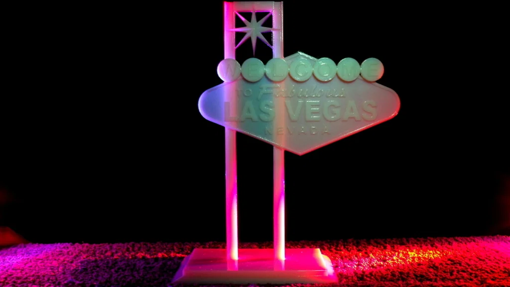 Mẫu “Las Vegas Sign (Update)” – tác phẩm đoạt giải cuộc thi Gizmodo UK & 3D Print UK. File đã được tách phần để in dễ hơn, có chỉnh thiết kế để hạn chế/không cần support; in Base, Sign Body, Sign Legs rồi dán lại.