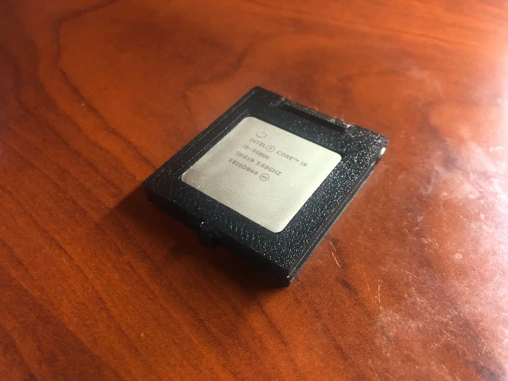 Hộp đựng CPU Intel (LGA1150) để gửi CPU an toàn thay vì chỉ quấn bubble wrap. Thiết kế ôm khít, tái sử dụng được; bản lề dùng một đoạn filament 1.75 mm. In dễ, hầu như không cần support.
