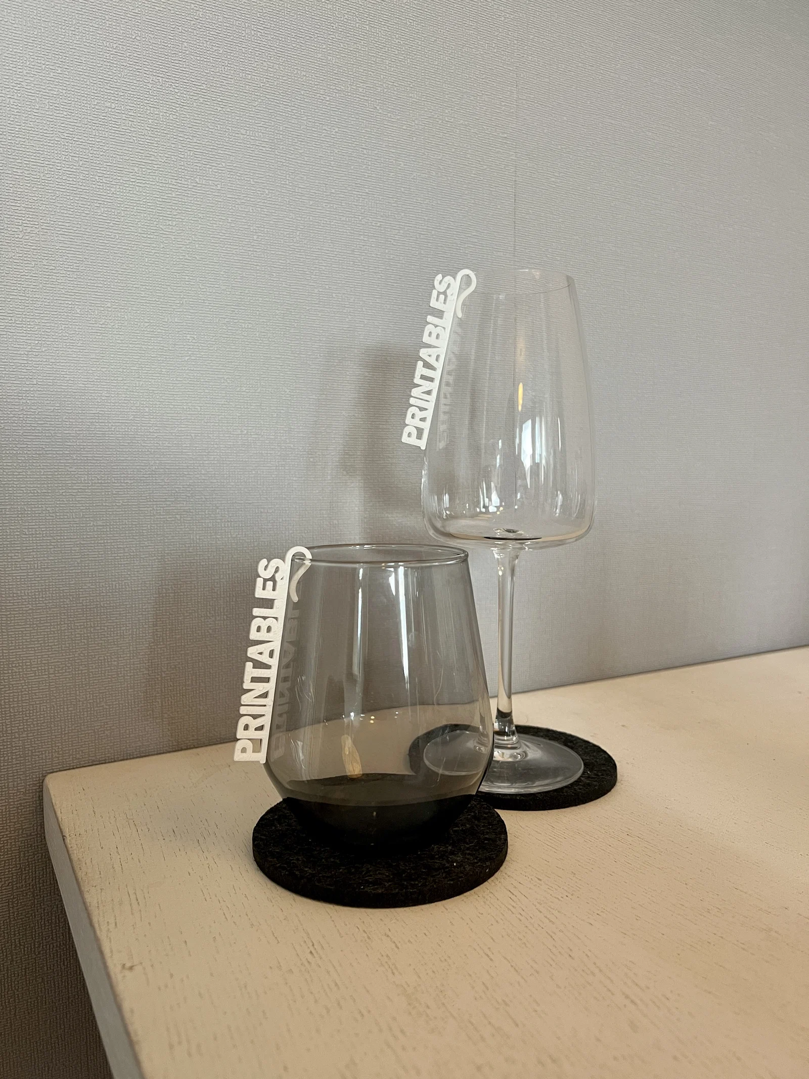 Bộ nametag cá nhân hóa để kẹp/gắn lên ly, cốc hoặc mug, giúp khỏi nhầm đồ uống trong tiệc hay đám cưới. Có hướng dẫn tùy chỉnh bằng Fusion360 hoặc ghép chữ trong Slicer, phù hợp cho sắp xếp chỗ ngồi.
