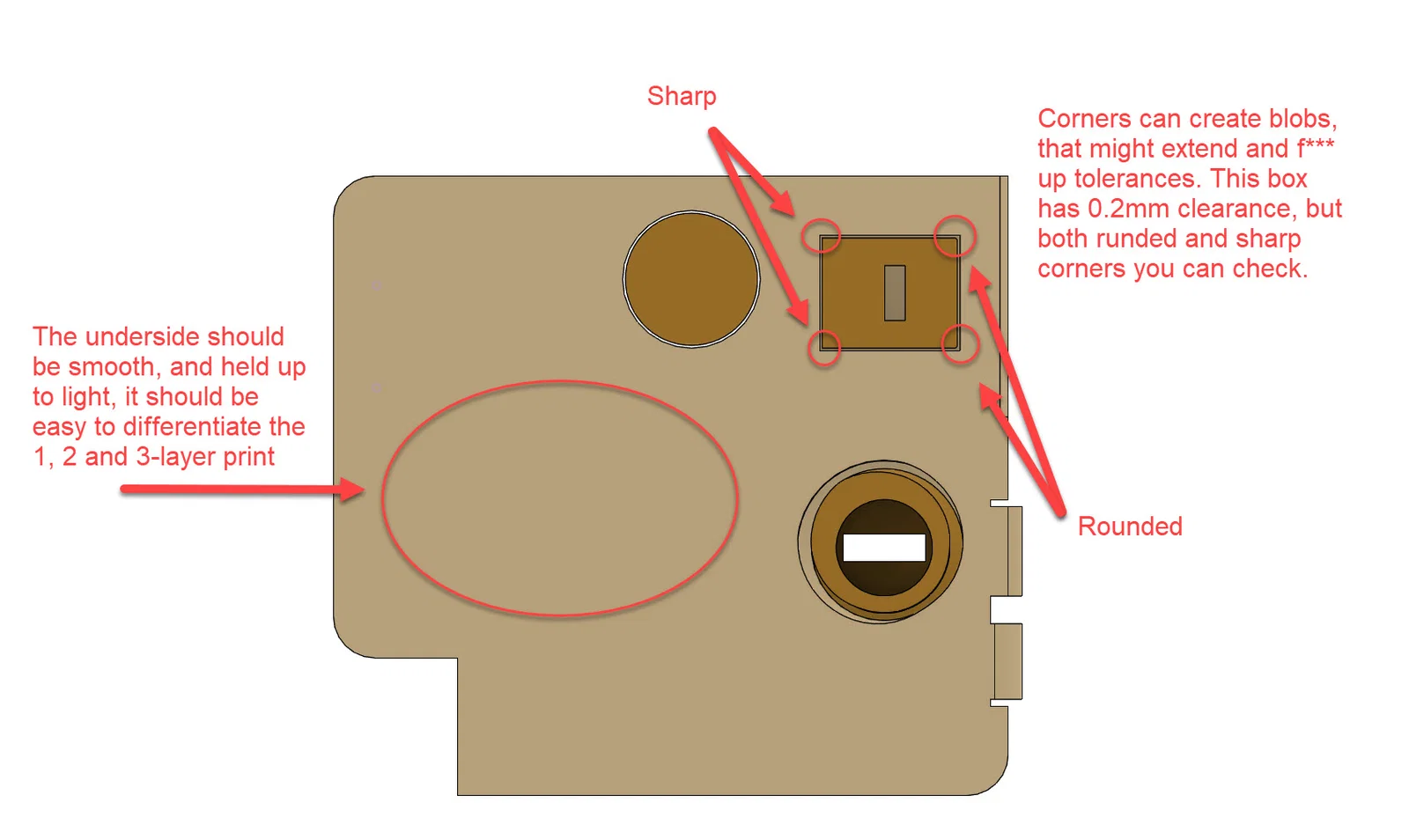 Đây là một công cụ hiệu chuẩn nhỏ và cực kỳ nhanh chóng cho các profile 0.2mm. Hãy dùng nó để kiểm tra chất lượng của các lớp in, vách tường, độ dung sai, cầu nối (bridging), ren ốc và nhiều yếu tố khác. Xem hình ảnh cung cấp (và văn bản bên dưới) để biết nhanh những điểm cần kiểm tra. Dựa trên kết quả in, đây là một vài mẹo chung giúp bạn bắt đầu. Lưu ý: Những mẹo này sẽ giúp ích nhưng không phải là tất cả cách xử lý sự cố. Mình không phải là chuyên gia, nhưng đã cố gắng hết sức để hỗ trợ mọi người. Vấn đề lớp đầu tiên Để có lớp đầu tiên hoàn hảo, cần sự cân bằng chính xác giữa Z-offset và tình trạng bàn in. Nếu bạn thấy khoảng cách giữa các đường in hoặc sợi nhựa rời rạc, đầu phun đang quá cao; hãy giảm Z-offset từng chút một. Ngược lại, nếu đường in trong suốt, mỏng như giấy hoặc máy in phát ra tiếng "cạch cạch", đầu phun đang quá thấp. Nếu bề mặt có gợn sóng, bạn đang để đầu phun hơi thấp, nhựa thừa không có chỗ thoát nên bị đùn lên. Khi lớp in có vẻ ổn nhưng bong tróc ở các góc, có thể do bề mặt bị bẩn hoặc co ngót nhiệt. Thay vì chỉ lau bằng cồn, hãy rửa tấm đệm in bằng nước ấm và nước rửa chén để loại bỏ dầu mỡ triệt để. Bạn có thể cải thiện độ bám bằng cách giảm tốc độ lớp đầu tiên (15–25 mm/s) và tăng độ rộng đường in lên 120–140%. Vấn đề dung sai Dung sai là khoảng hở được thiết kế giữa hai bộ phận để chúng khớp hoặc di chuyển được. Nếu các bộ phận bị dính vào nhau, máy in của bạn có thể đang gặp lỗi về độ chính xác kích thước. Nguyên nhân phổ biến nhất là Flow Rate (tỷ lệ đùn). Nếu dòng nhựa dư thừa 5%, khoảng hở 0.2mm sẽ biến mất. Hãy thử điều chỉnh Flow Rate trong slicer. Cầu nối và góc nghiêng (Overhang) Để cầu nối đẹp, quạt làm mát là quan trọng nhất; với PLA, nên để quạt 100%. Trong slicer, hãy bật thiết lập Bridge, giảm Bridge Flow Ratio xuống 0.8 hoặc 0.9 để kéo căng nhựa khi bắc cầu. Khi in góc nghiêng (overhang), hãy in Inner Walls trước để tạo khung đỡ cho vách ngoài. Vấn đề phân lớp Nếu bản in trông như chồng bánh kếp không đều, có thể do lỗi cơ khí hoặc đùn nhựa không ổn định. Hãy kiểm tra trục Z, bôi trơn trục vít bằng mỡ gốc PTFE (tránh dùng WD-40). Ngoài ra, hãy kiểm tra PID Tuning để ổn định nhiệt độ hoặc sấy sợi nhựa nếu bị ẩm. Hiện tượng kéo tơ (Stringing) Để loại bỏ tơ, cần đồng bộ lực rút nhựa (Retraction). Thử rút 0.5–1.5mm (với Direct Drive) hoặc 3.0–6.0mm (với Bowden). Tắt chế độ Z-Hop vì nó thường tạo khe hở khiến nhựa bị rỉ. Vấn đề góc và đường nối (Seam) Vết đốm ở góc thường do áp suất dư trong đầu phun. Hãy tăng tốc độ di chuyển hoặc chỉnh Outer Wall Wipe Distance khoảng 0.2–0.4mm để xóa vết. Sử dụng tính năng Scarf Seams trên các phần mềm slicer đời mới để giấu đường nối hiệu quả nhất. Vấn đề ren ốc Nếu ren không khớp, do máy đang bị "over-extrude". Hãy điều chỉnh Horizontal Expansion thành giá trị âm nhỏ để tạo khe hở. Chúc bạn in thành công! :-)