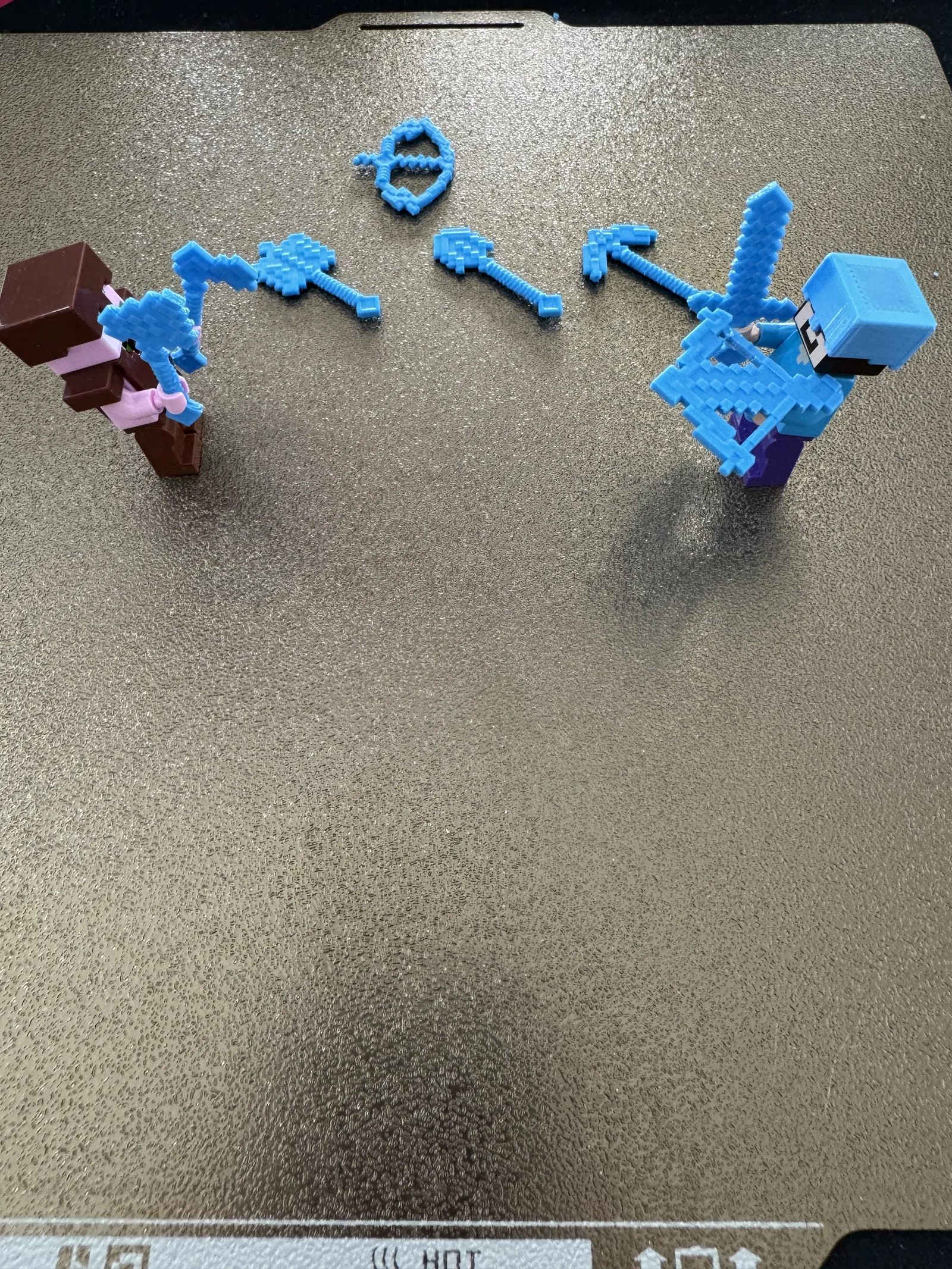 Bộ vũ khí và dụng cụ Minecraft dạng brick (tương thích L.e.g.o) được dựng lại vì bé hay làm mất. Gồm sword, crossbow, bow, pickaxe, axe, hoe, shovel và thêm biến thể Mace 1.21.