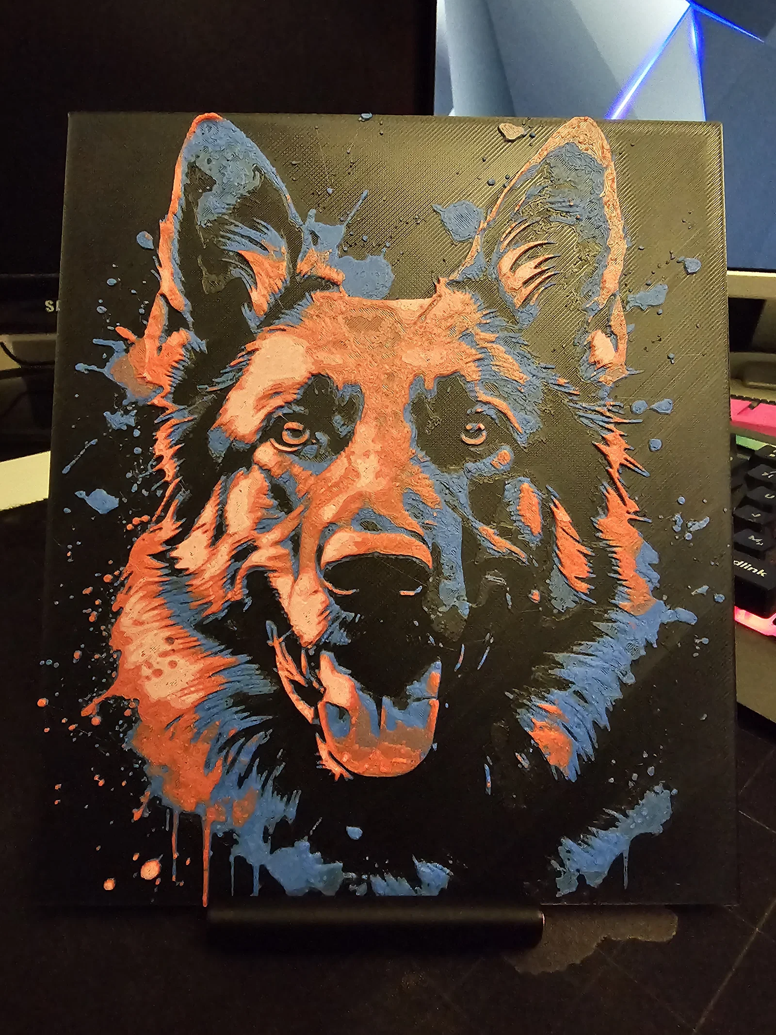 Mẫu HueForge hình German Sheperd để trang trí/wall art. Cho phép scale theo trục X và Y nhưng không đổi trục Z. In 100% infill, layer height 0.08mm (base 0.16mm) và thay màu theo các mốc layer đã hướng dẫn.