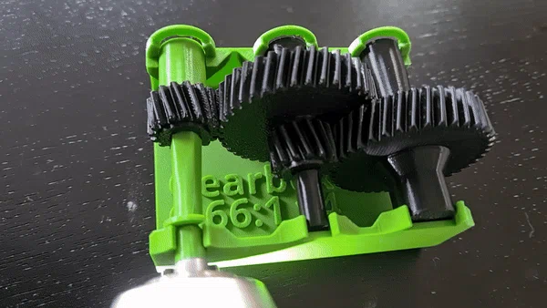 Với ý tưởng tạo ra một chiếc RC Crawler, tôi đã thực hiện một bản thiết kế thử nghiệm cho bộ giảm tốc 6.6:1. Vì nhựa không phải là vật liệu tốt nhất để truyền mô-men xoắn ở tốc độ cao, nên toàn bộ cụm lắp ráp được thiết kế theo dạng mô-đun để giữ được độ bền kết cấu khi lắp vào. Điều này giúp tôi có thể thay thế các bộ phận bị mòn ngay lập tức mà không mất hàng giờ để in lại.