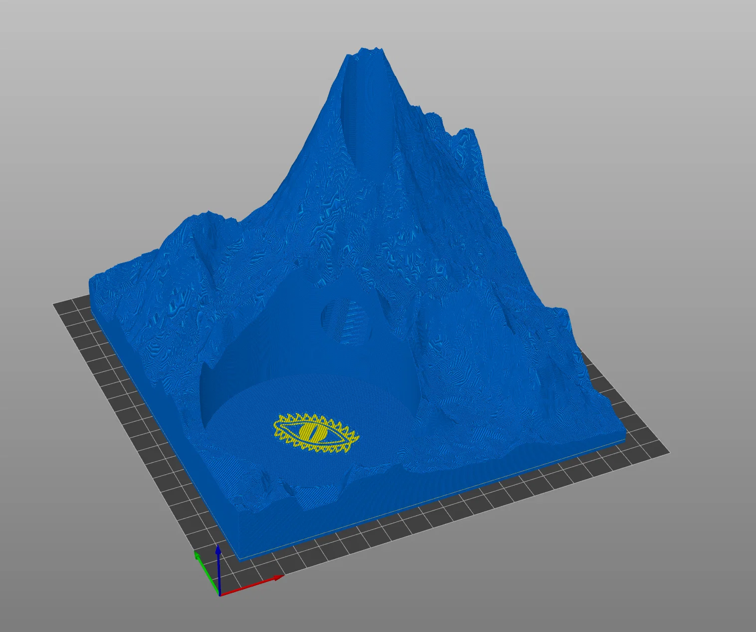 Bạn hoàn toàn có thể in nhiều màu để làm nổi bật biểu tượng Mordor (ở độ cao khoảng 2.08mm và 2.28mm), dù điều này không thực sự bắt buộc. Trên bản mẫu mình in, mình đã hơi sai sót ở phần đổi màu vì loại nhựa galaxy PLA khá trong suốt khi in lớp mỏng hơn mình tưởng, khiến lớp màu vàng bị lộ ra ngoài – nhưng đây không phải lỗi, mà là một tính năng độc đáo đấy chứ.