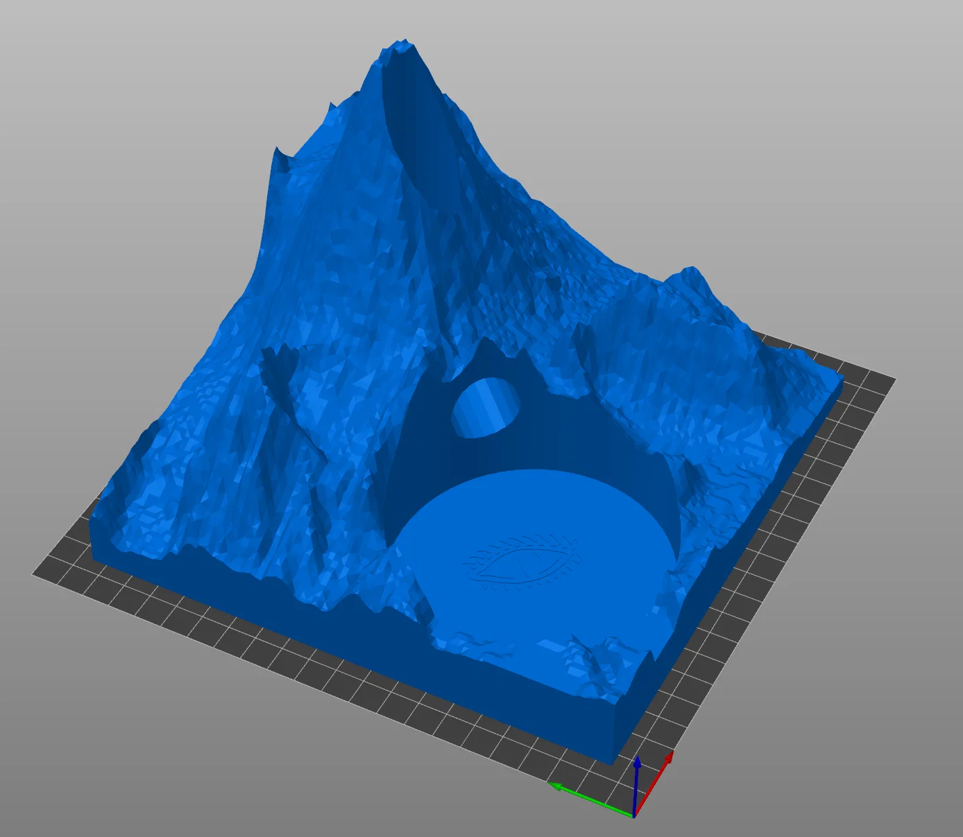 Đây là thiết kế đầu tay của mình, mình đã lấy mô hình địa lý thực tế của núi Mount Doom trong bộ ba phim LOTR, chính là ngọn núi Ngauruhoe hùng vĩ tại New Zealand, rồi biến nó thành một tháp đổ xúc xắc (dice tower)! Đặc biệt hơn, mình còn dập nổi hình Con mắt của Sauron từ lá cờ của Mordor lên trên đó nữa.