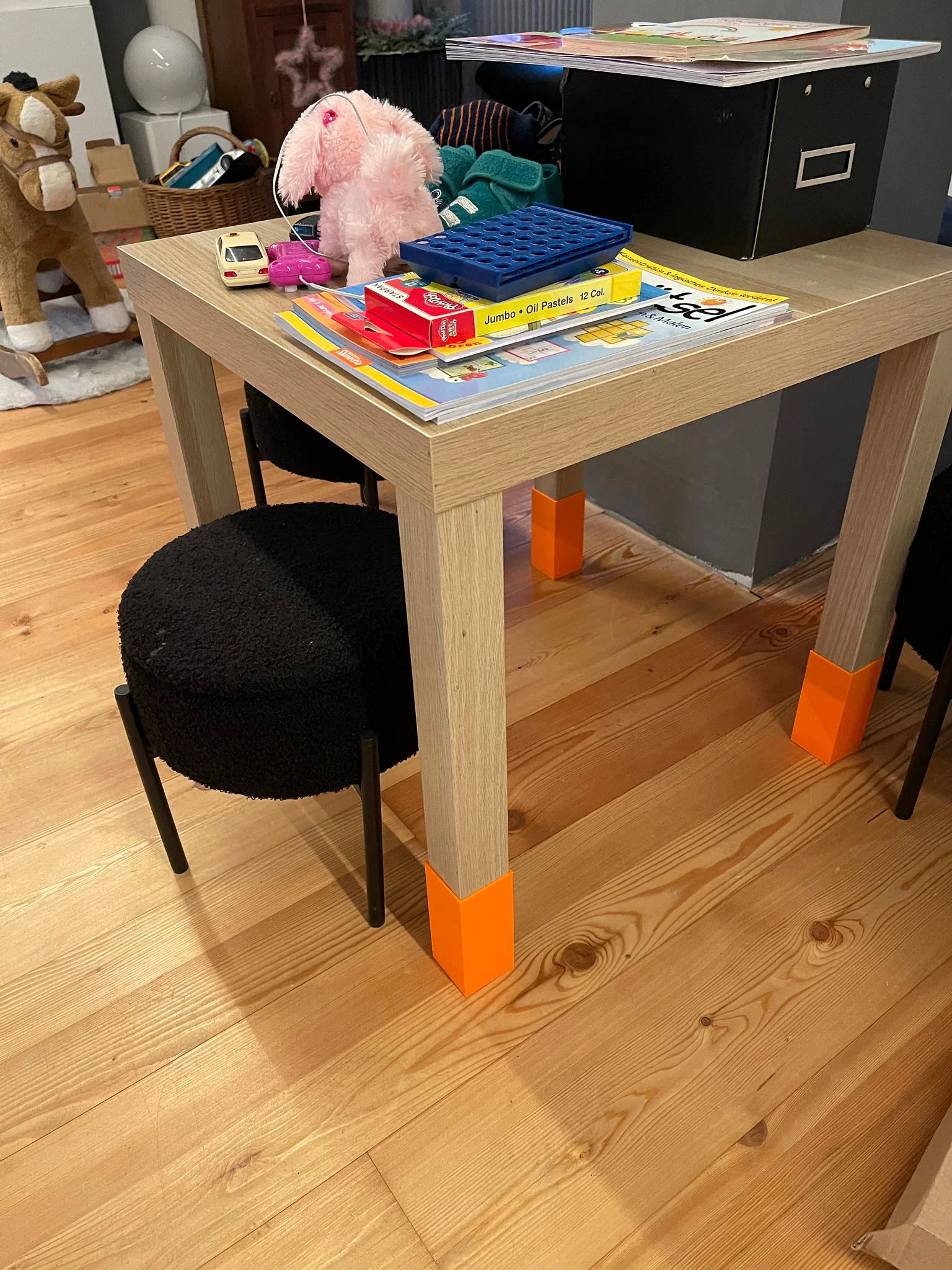 Vì thấy cái bàn IKEA LACK hơi thấp so với nhu cầu sử dụng của mình, nên mình đã thiết kế một bộ nối chân bàn cao 9cm, rất đơn giản và chắc chắn.