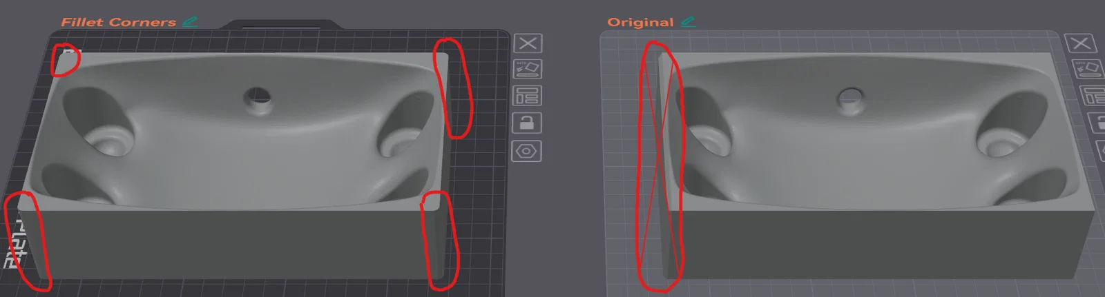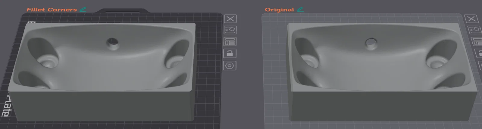 Mình đã chỉnh sửa lại mô hình gốc cho vừa ý hơn. Các góc đã được bo tròn và mình cũng loại bỏ bớt phần vật liệu thừa ở một bên.