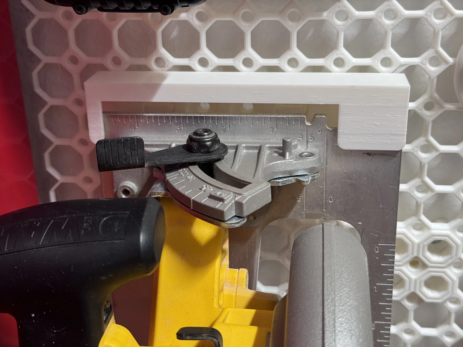 Đây là giá treo cưa đĩa tuyệt vời - gắn rất chắc chắn vào bảng Multiboard và vừa khít với chiếc Dewalt 570 của tôi. Có thể nó cũng vừa với các loại cưa khác - cứ nhắn cho tôi nếu cần điều chỉnh gì nhé.