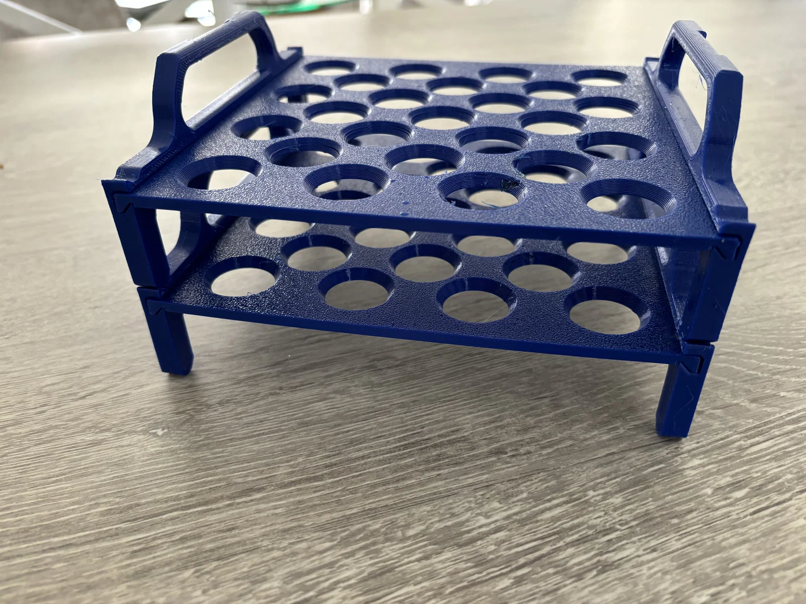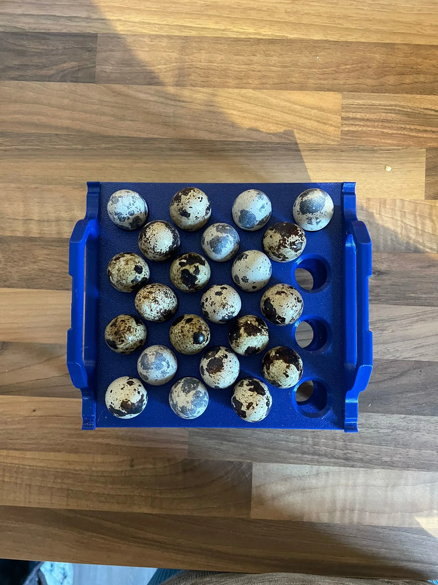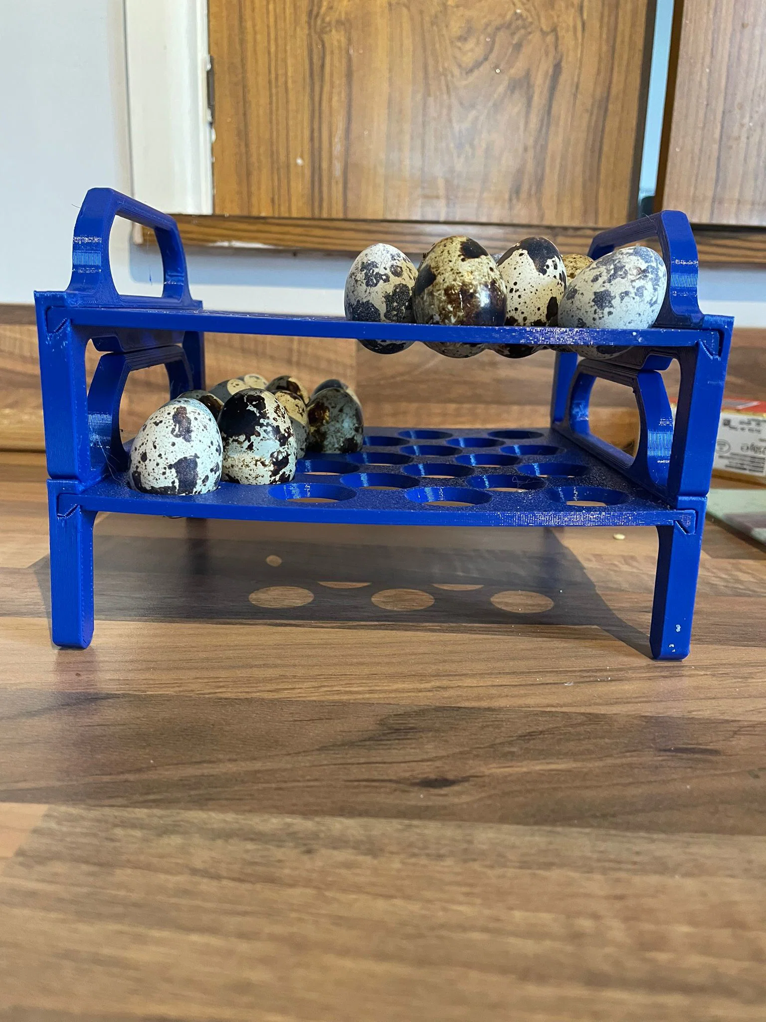 Khay đựng trứng cút thiết kế dạng xếp chồng tiện lợi, mỗi tầng có thể chứa được 25 quả. Mẫu được tối ưu hóa để tiết kiệm không gian, dễ dàng tháo lắp mà không cần dùng keo. Hỗ trợ file STEP và Fusion360 để bạn tùy chỉnh theo ý muốn.