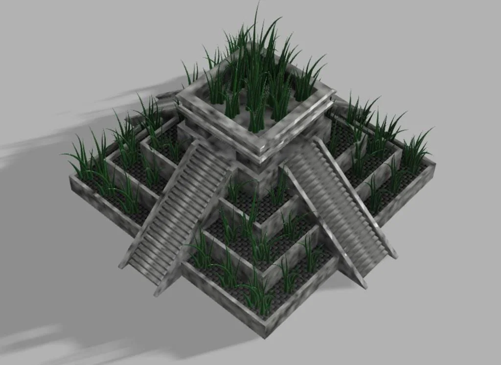 Chậu cây họa tiết đền thờ Aztec
