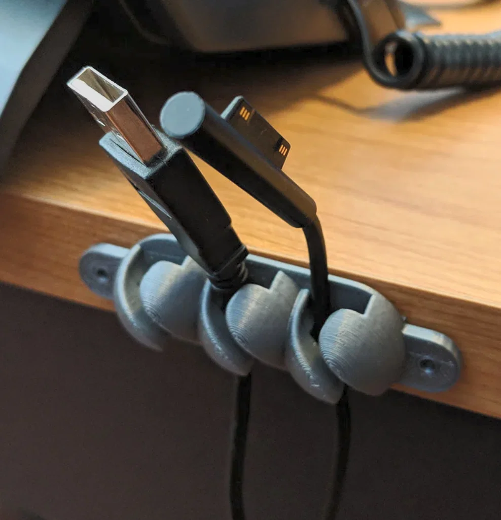 Mình rất thích ý tưởng của dustin/dlsspy về việc tạo độ xoắn trong kẹp giữ dây cáp. Mình muốn giữ thêm vài sợi dây nữa thẳng hàng và có thể bắt vít cố định nó.