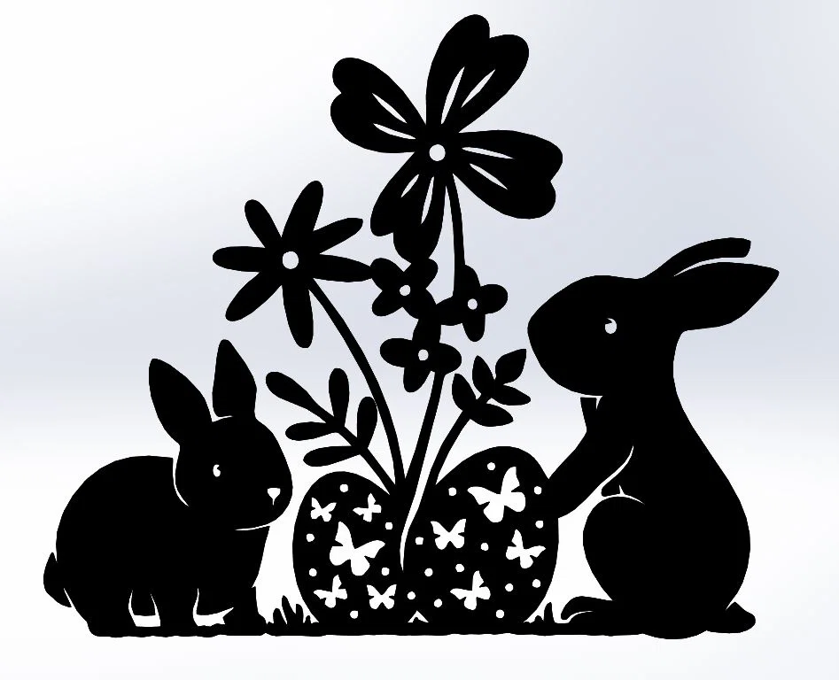 Chào bạn, nếu bạn đang tìm kiếm một món đồ trang trí độc đáo để mang không khí lễ Phục Sinh vào ngôi nhà mình, thì mẫu thiết kế “Line Art Easter Bunny” này chính là lựa chọn tuyệt vời. Đây là một tác phẩm nghệ thuật dạng 2D với các đường nét cắt gọt tinh tế, tái hiện hình ảnh hai chú thỏ đáng yêu đang quây quần bên những bông hoa và trứng phục sinh cách điệu. Với thiết kế phẳng, gọn gàng và thẩm mỹ, sản phẩm này rất phù hợp để làm điểm nhấn trang trí trên các mảng tường trống, cửa ra vào hoặc tạo không gian ấm cúng cho góc học tập của bé trong dịp lễ.