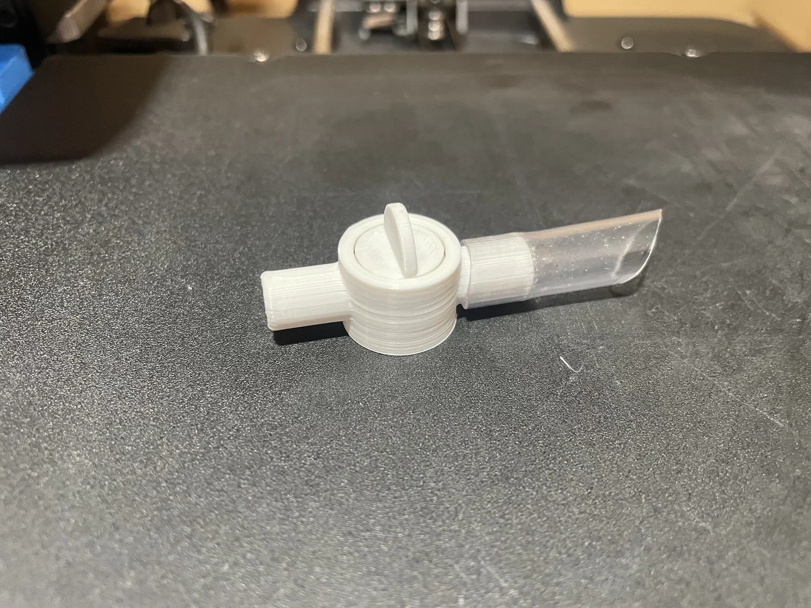 Đây là mẫu van xoay được in liền khối (print in place) dùng để kết nối ống mềm kích thước 9mm (đường kính trong 7mm). Độ hở giữa các bộ phận chuyển động là 0.4mm. Mình cũng đã làm thêm một phiên bản với độ hở 0.5mm cho những bạn gặp khó khăn với mức 0.4mm. Mình chưa thử bản 0.5mm, nhưng bản 0.4mm in rất tốt trên máy Ender 3 v3 SE của mình.