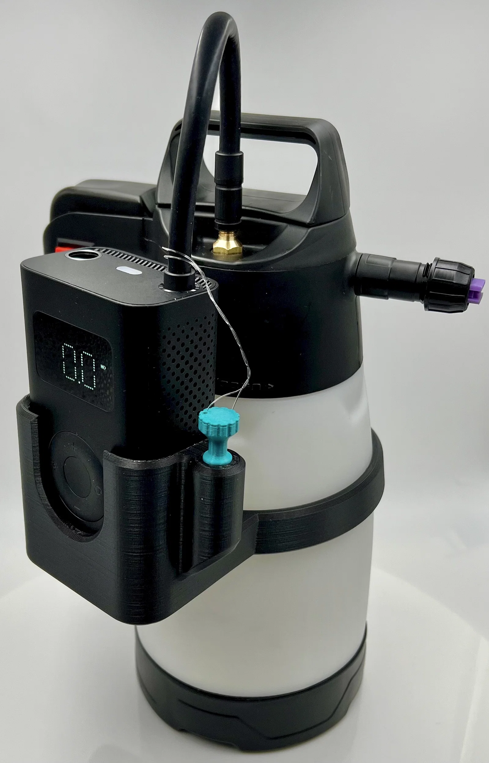 Bản V2 được cập nhật từ thiết kế gốc; xem V1 để tham khảo hình ảnh, kích thước và chi tiết. In PETG đen mờ rất đẹp, hoặc phối màu để dễ nhận biết dung dịch đang dùng trong bình.
