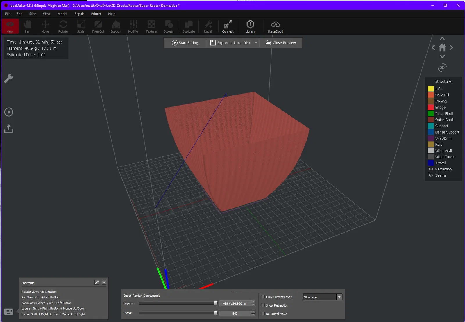 - Dome nên in lật ngược ở vase mode. Mình dùng Ideamaker để thêm texture bề mặt, để dome không bị mềm cong quá.