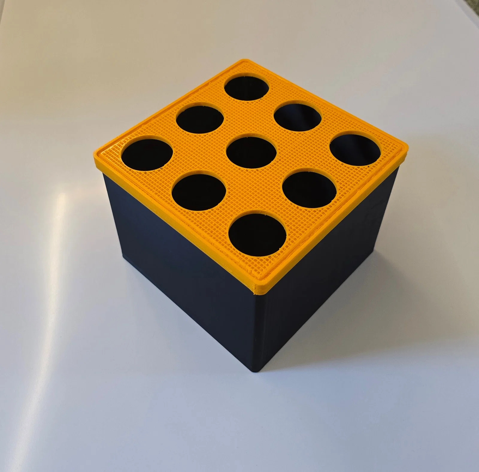 - Mình dùng “support” như một cách để tạo lưới ở phía trên cái nắp, nên mình mới upload file .3mf.