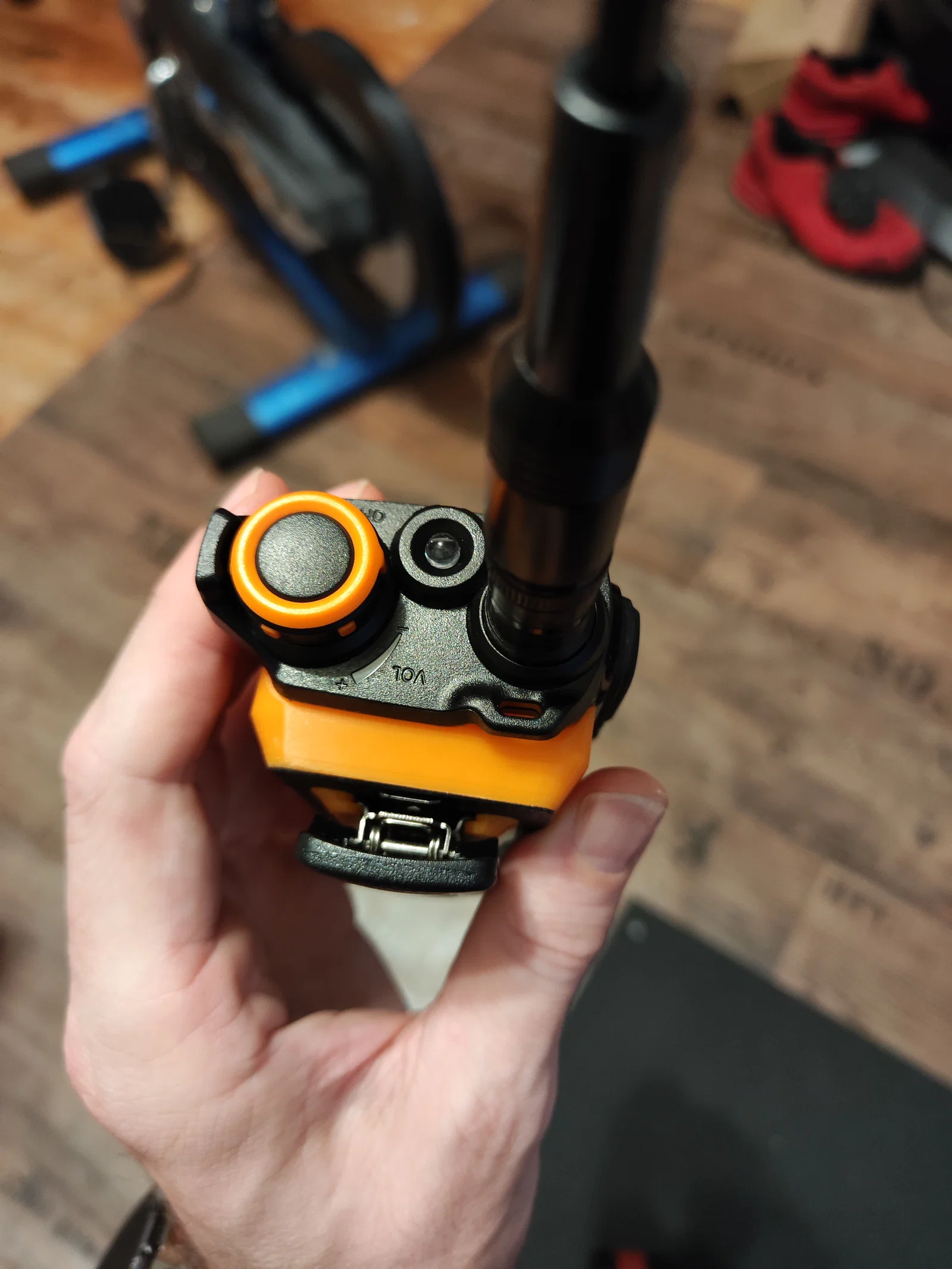 Mình cải tiến nắp trên để nó kẹp (clip) cơ khí trực tiếp vào phần base và được giữ bằng 2 chốt. Nhờ vậy gần như không thể lỏng ra rồi rớt.