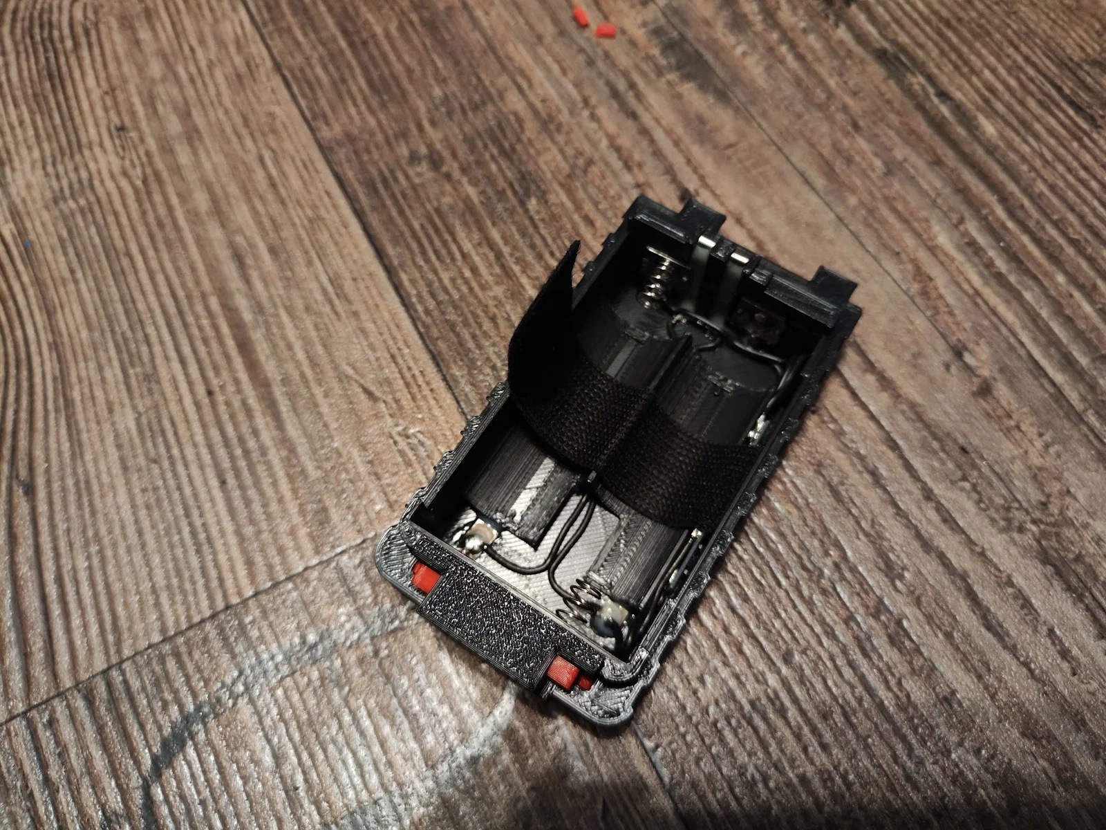 Tổng hợp các biến thể DIY thành một bản pack pin 18650 cho Quansheng UV-K5 dễ làm và ổn định hơn, có tiếp điểm sạc dùng được với đế sạc zin, cải tiến cơ chế khoá và có “battery pack activator” để kích BMS sau khi thay cell.