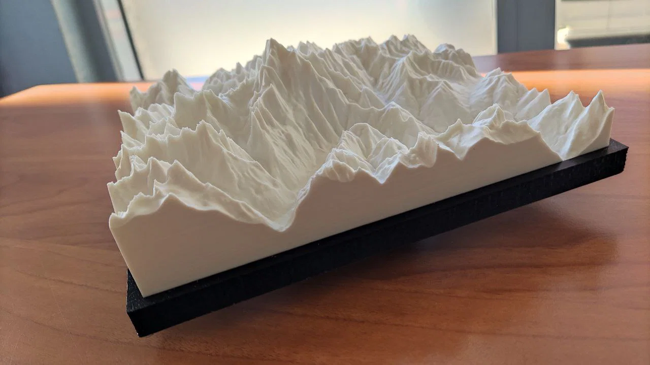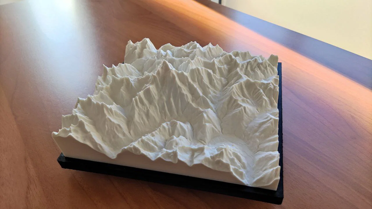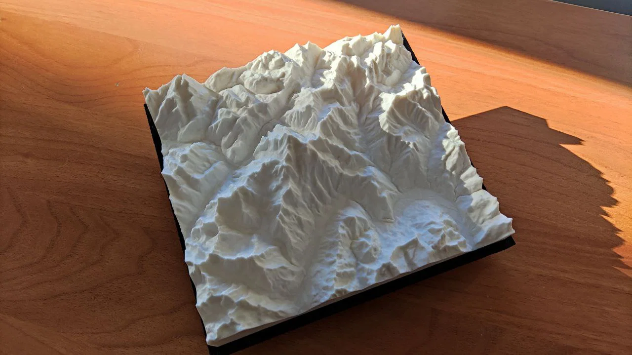 Tượng mini Mont Blanc Massif tái hiện các đỉnh núi hùng vĩ, sông băng và sống núi sắc nét. Có support thiết kế riêng để trưng bày nghiêng trên bàn. Dễ in, không cần supports; khuyến nghị nozzle 0.4mm, layer 0.2mm hoặc adaptive layers.
