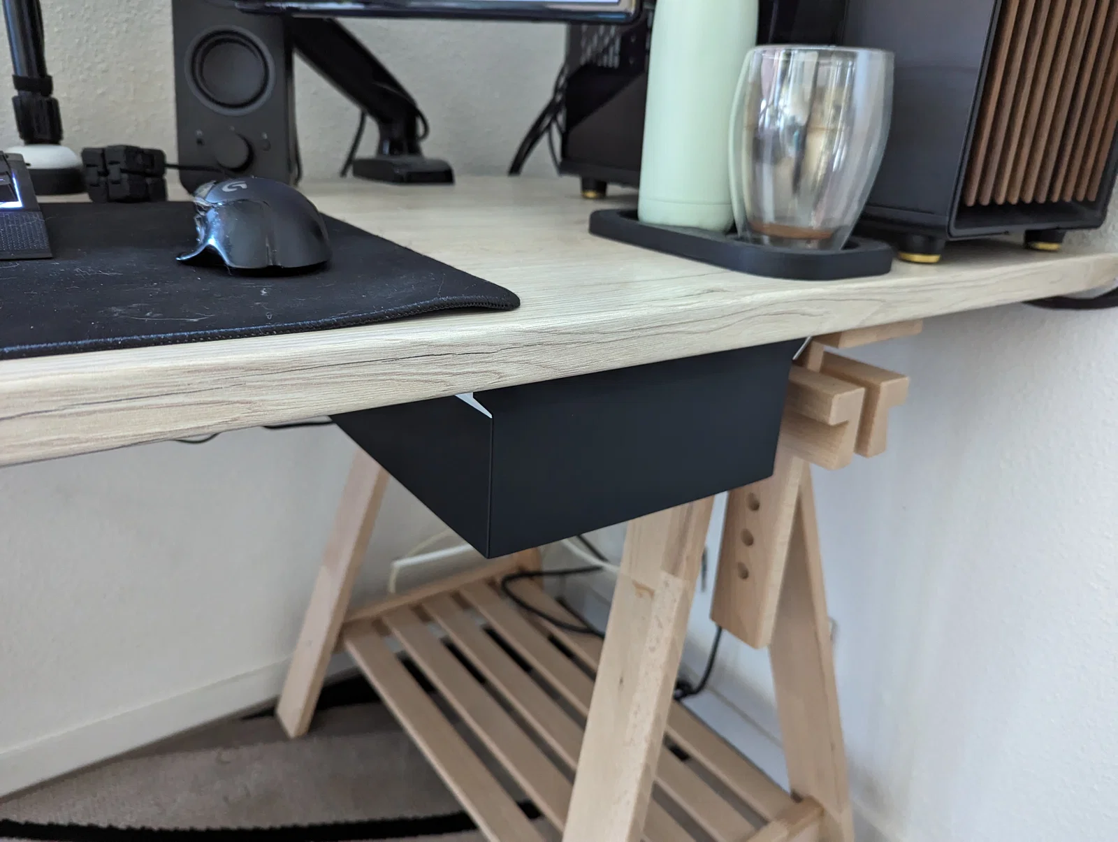 Một ngăn kéo nhỏ gọn, quá hợp để gắn dưới mặt bàn.
