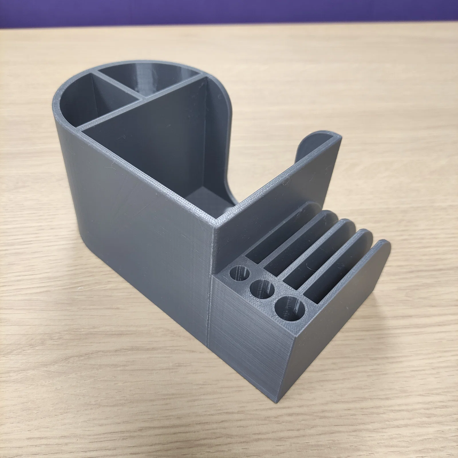 Đây là bản remix, gộp 2 mẫu riêng lẻ (mẫu của @DusBus là “Pen and paper holder / desk organizer” và mẫu của @DaniBautista là ) thành một mẫu office desktop organiser lớn hơn.