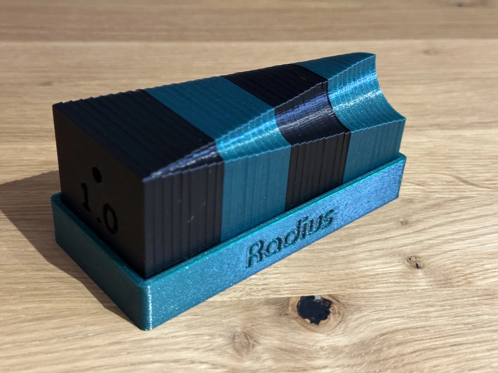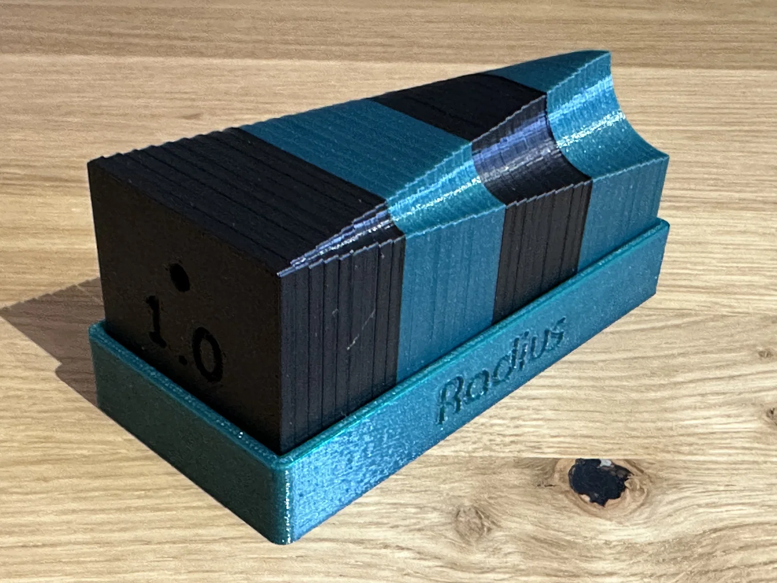 Bộ thước đo bán kính (Radius gauges) từ 1–35mm kèm holder để cất gọn. Có tùy chọn thêm gauge 36 và 37mm cho vừa đầy holder. Hướng dẫn in: profile speed 0.2, không cần supports/brim, dùng textured sheet.