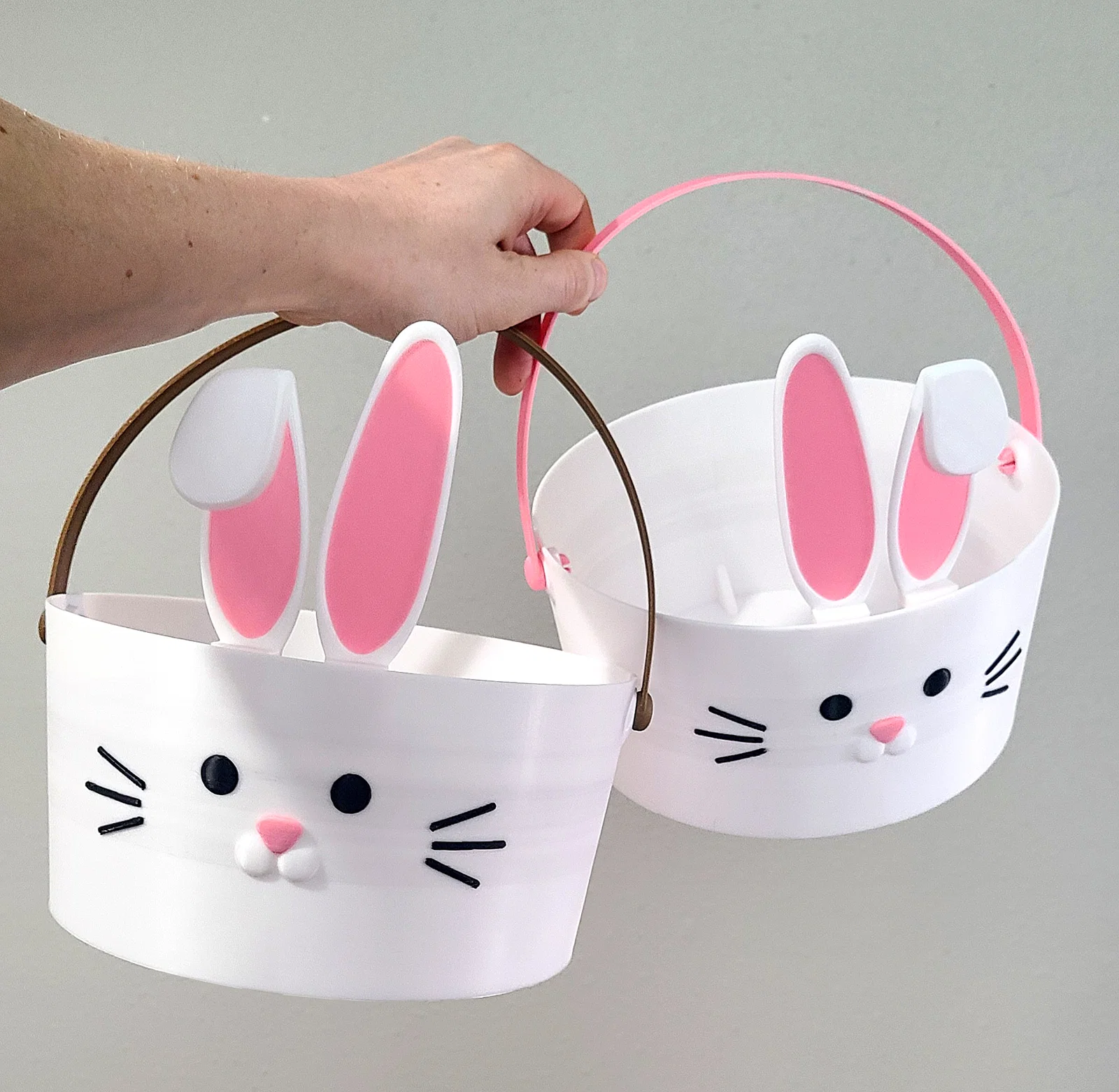 Giỏ Phục Sinh hình thỏ dễ thương với tai thỏ thay đổi được, quai xách gắn rời và đáy ít flex. Thiết kế ổ gắn bấm khít để dễ đổi màu hoặc thay linh kiện; giỏ có thể in không cần support (tùy máy).
