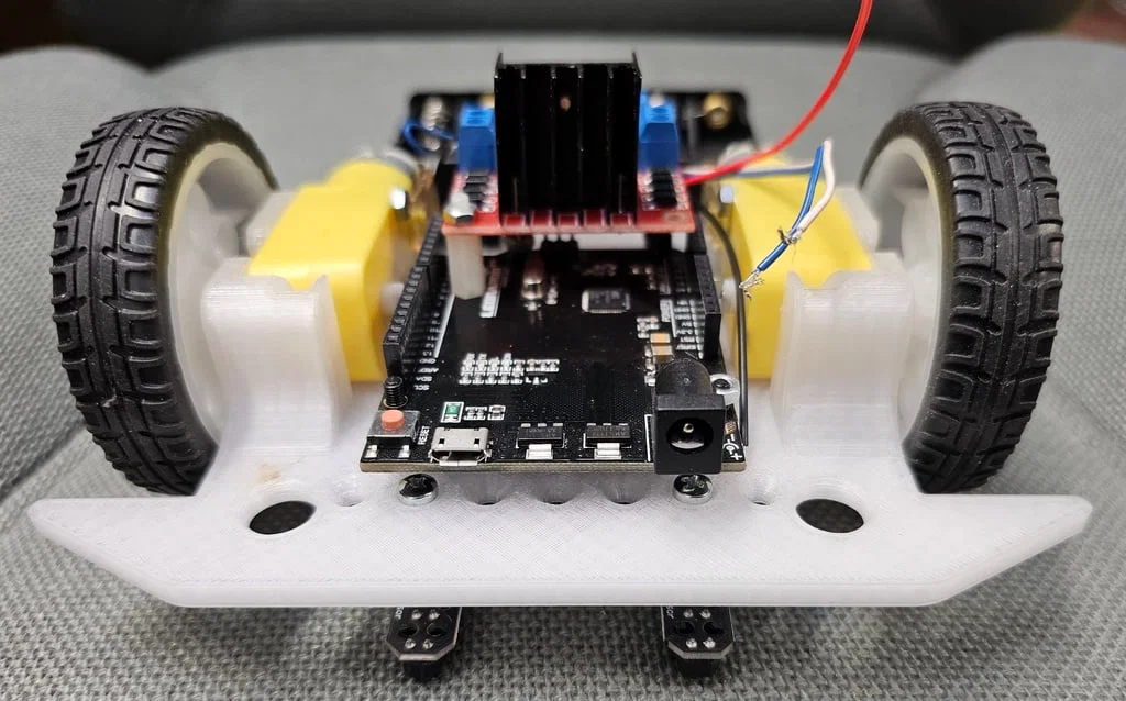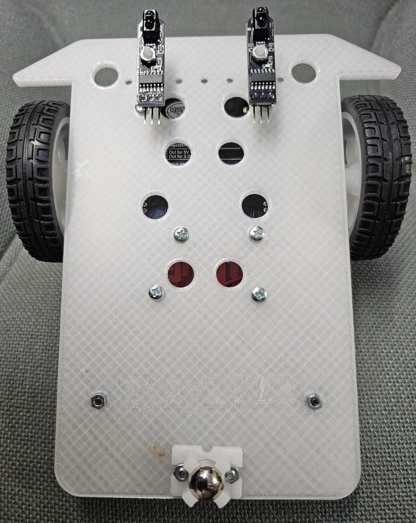 Mẫu khung chassis cho robot Arduino Line Follower, thiết kế đơn giản, dễ in 3D. Dùng bi đỡ đường kính 12mm. Không cần raft hay support, phù hợp để lắp ráp nhanh và chạy thử bám line.